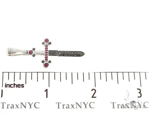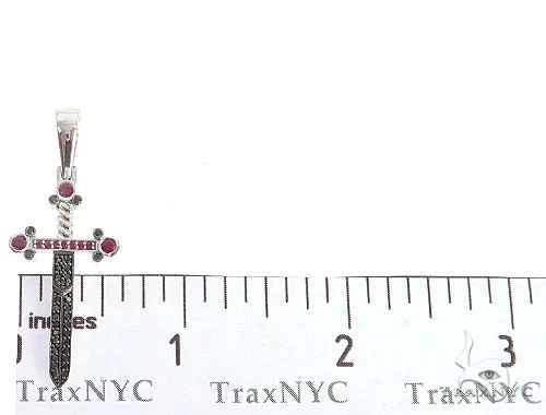 10k White Gold Black Diamond And Ruby Sword Pendant 65104