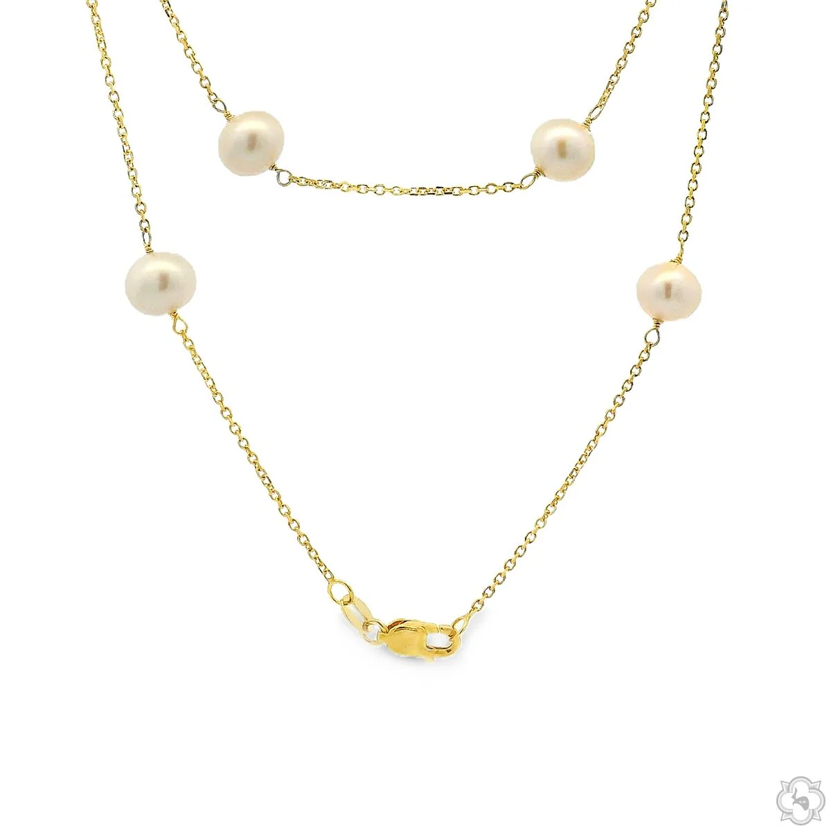 Soft pearls are spaced along a delicate chain for a timeless and effortless look. This necklace brings just the right touch of elegance to any outfit. Beautiful on its own or layered for a modern twist.
