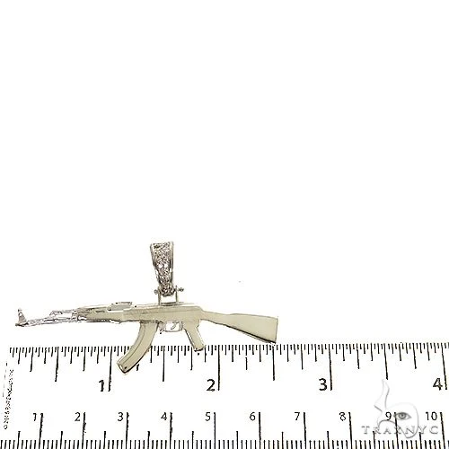 This stylish gold AK-47 pendant combines edgy design with luxurious elements, featuring a sparkling diamond bail for added elegance. The detailed craftsmanship makes it a perfect piece for firearm enthusiasts and jewelry lovers alike. Perfect for firearm enthusiasts or anyone looking to make a bold statement, this pendant combines style and individuality.