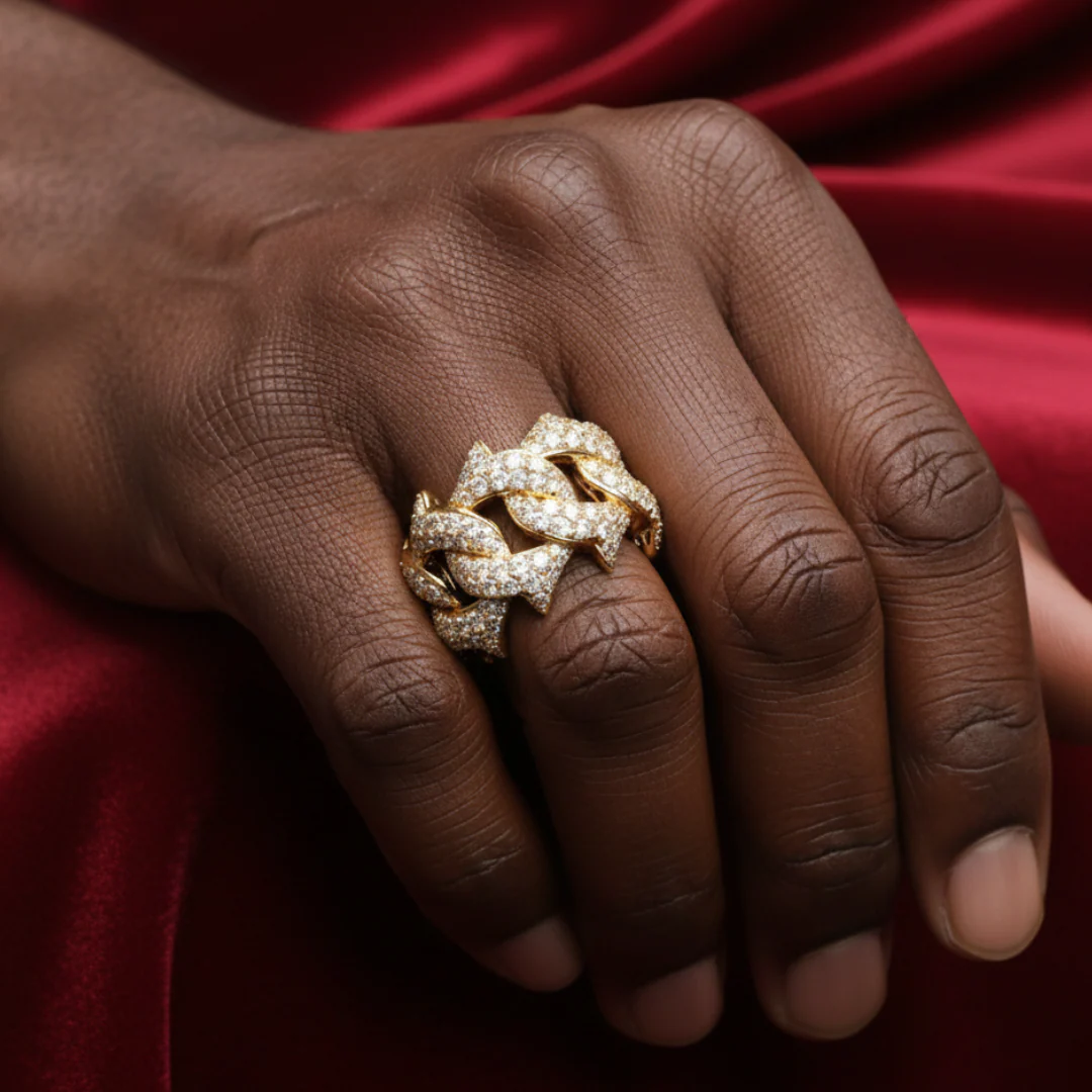 14K Gold Diamond Spiked Cuban Link Ring 66170