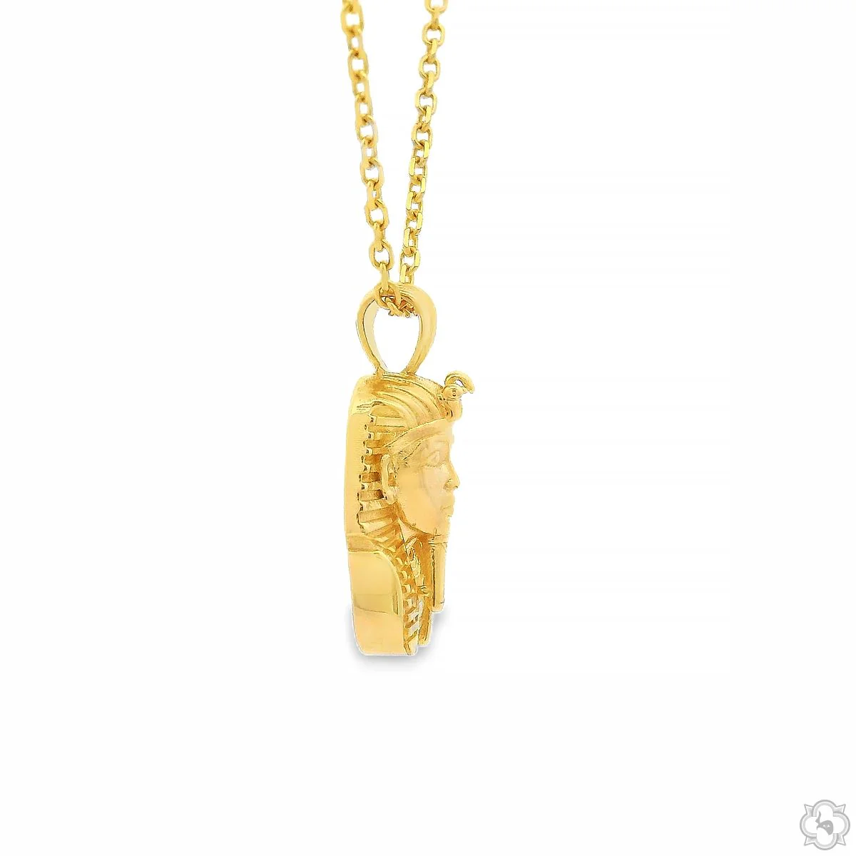 This finely detailed pendant features the face of a pharaoh in a sleek mini design. Small yet bold, it adds a touch of ancient elegance to any style. A powerful symbol captured in a compact piece.
