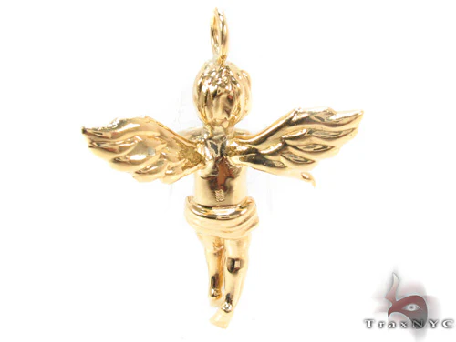 14K Gold Prong Diamond Angel Pendant 36459