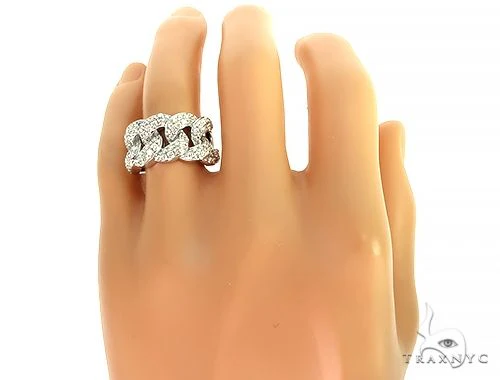 14K White Gold Miami Cuban Link Diamond Ring 65850