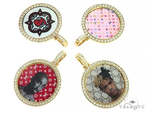 14K Yellow Gold Custom Diamond Holographic Prism Photo Pendant 65758
