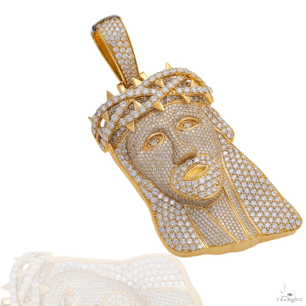 14K Yellow Gold Jesus w/Thorns Diamond Pendant 31 CT 69766
