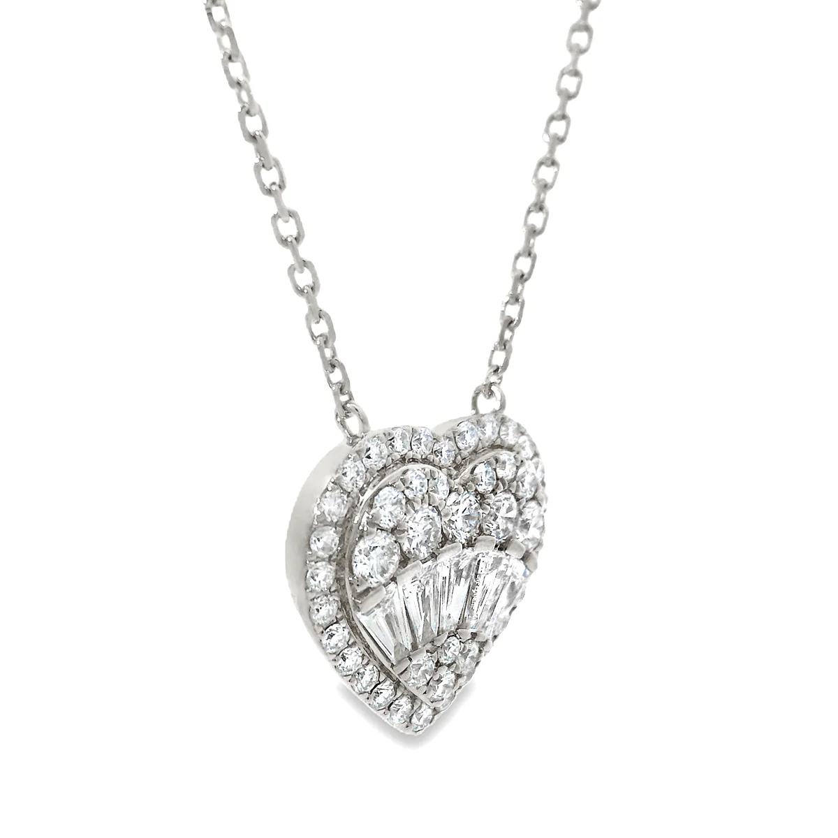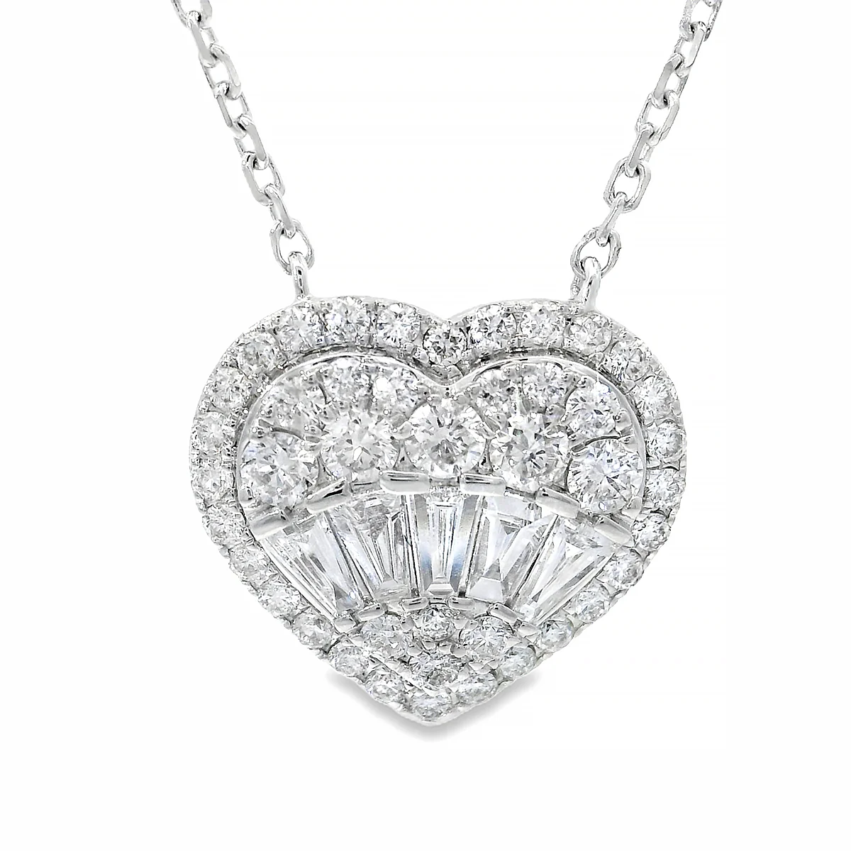 18K Gold Heart Baguette Diamond Necklace 67914