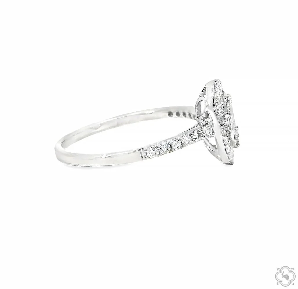 Celebrate your love with this stunning 18K Gold Pear Shape Engagement Ring, blending classic elegance with modern flair. Set in radiant yellow or white gold, it features a pear-shaped halo of round di…