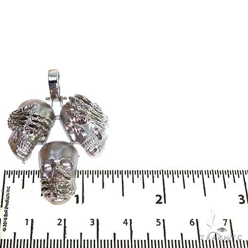 .925 Silver See No Evil, Hear No Evil, Speak No Evil Skull Pendant 67697