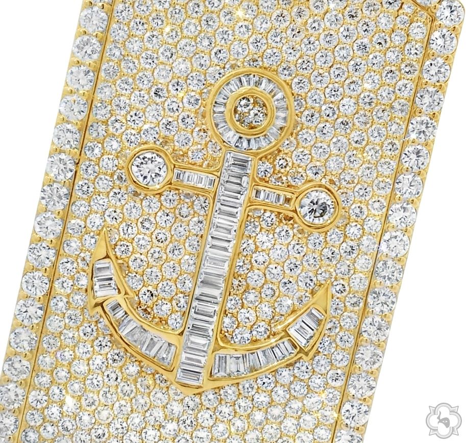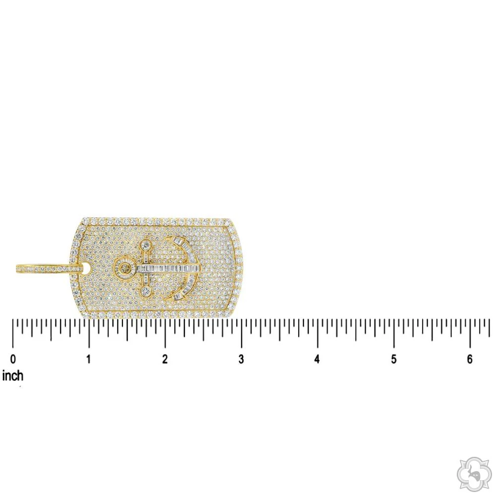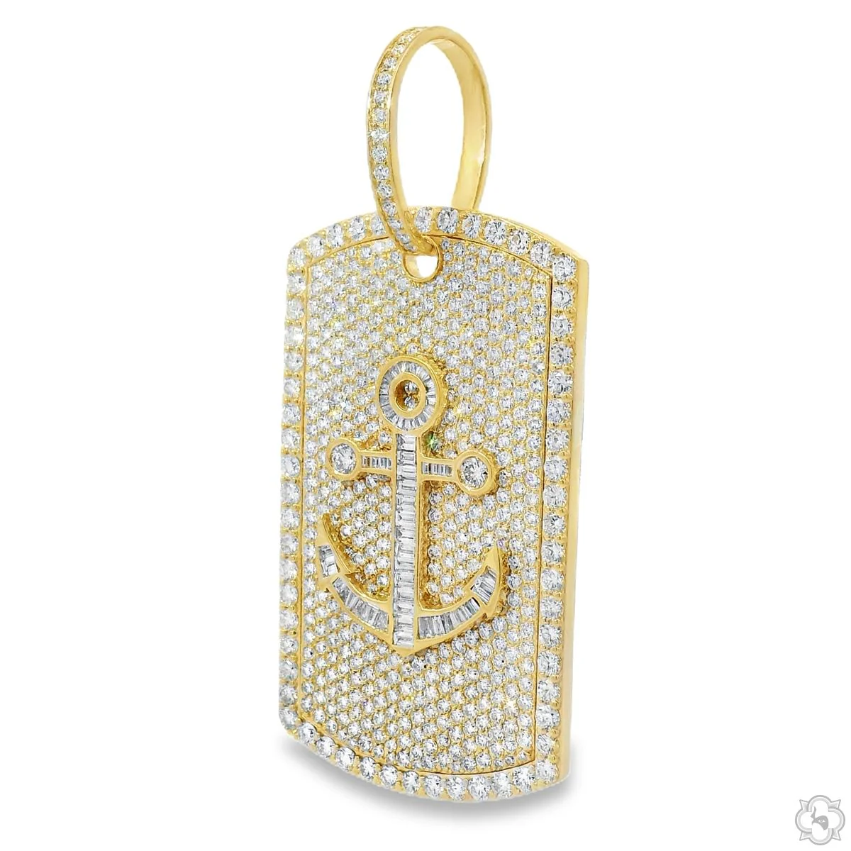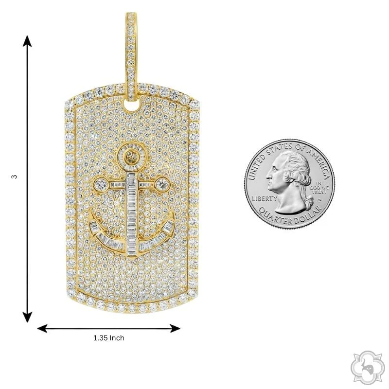 A bold symbol of strength and stability, this Anchor Diamond Dog Tag Pendant blends nautical charm with modern luxury. Meticulously crafted in gold and fully encrusted with shimmering diamonds, the pendant features a raised anchor design outlined with precision-set baguette and round diamonds. The dog tag backdrop sparkles from edge to edge, creating a radiant contrast that commands attention. Whether worn solo or layered, this piece is a standout statement for those who navigate life with confidence and purpose.