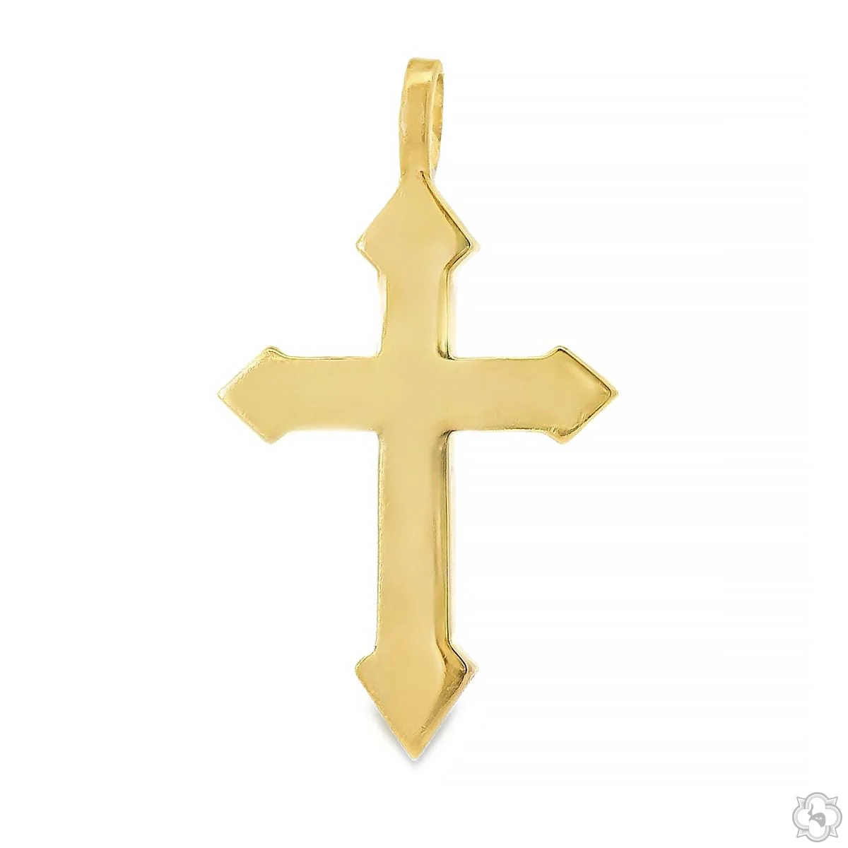 Clean lines and powerful symbolism define this striking pendant. Crafted in solid gold, its arrowhead-style tips bring a bold edge to a classic cross silhouette. Whether worn for faith, style, or both, this piece makes a confident and timeless statement.