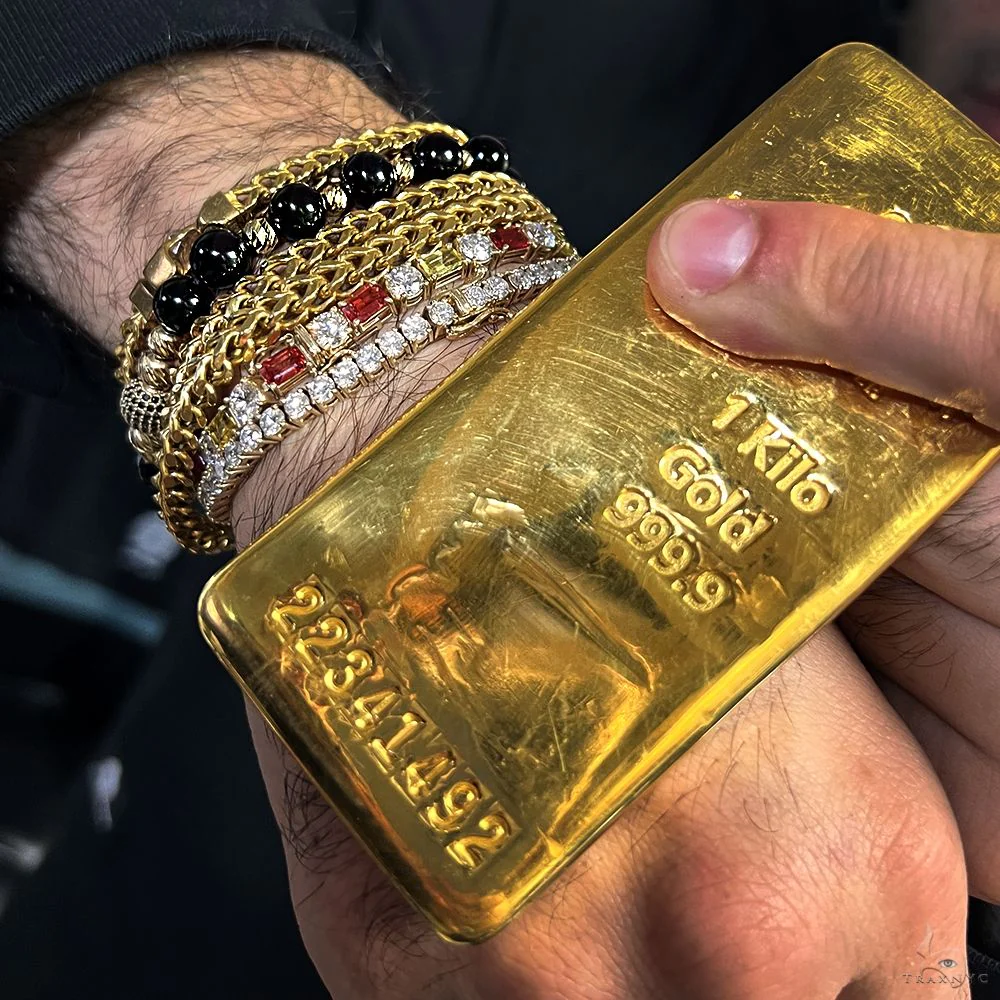 This exclusive TraxNYC bracelet, a personal favorite of Max, the founder of TraxNYC, is crafted with a combination of onyx beads and 14K gold. The smooth, deep black onyx beads evoke a sense of resilience and elegance, while the 14K gold beads bring a luxurious shine that perfectly complements the bold, dark tones of the onyx. Worn daily by Max himself, this bracelet embodies both style and quality, making it a perfect choice for anyone seeking a blend of elegance and everyday wearability. The piece exudes timeless appeal, ideal for those who appreciate a statement accessory with personal significance.