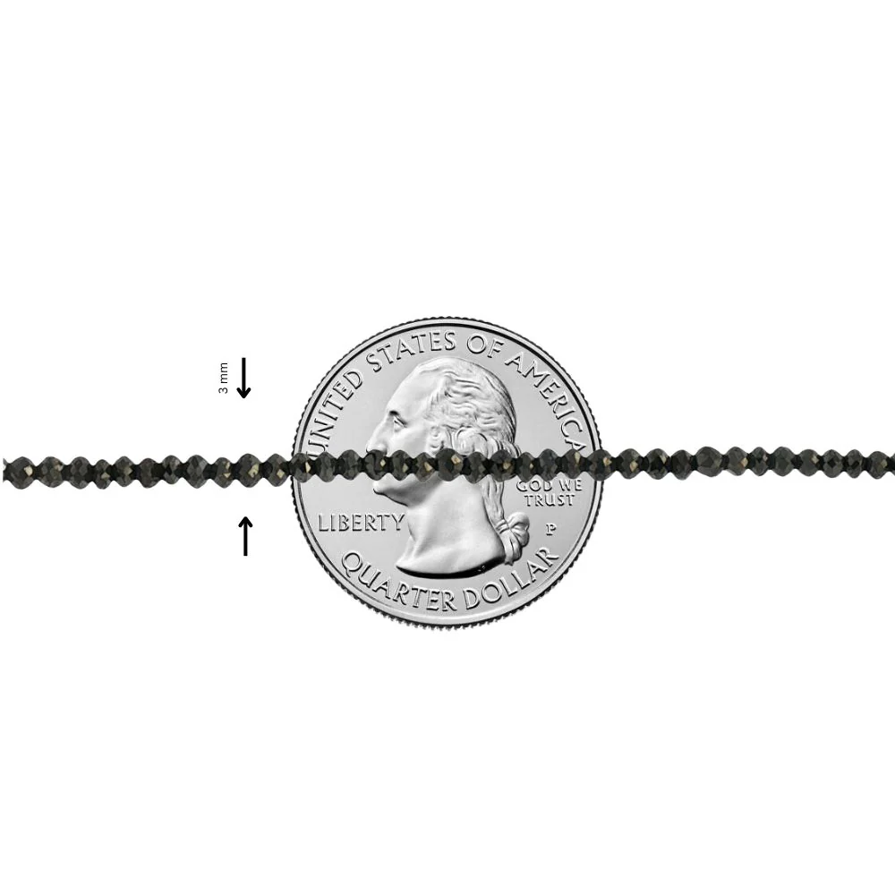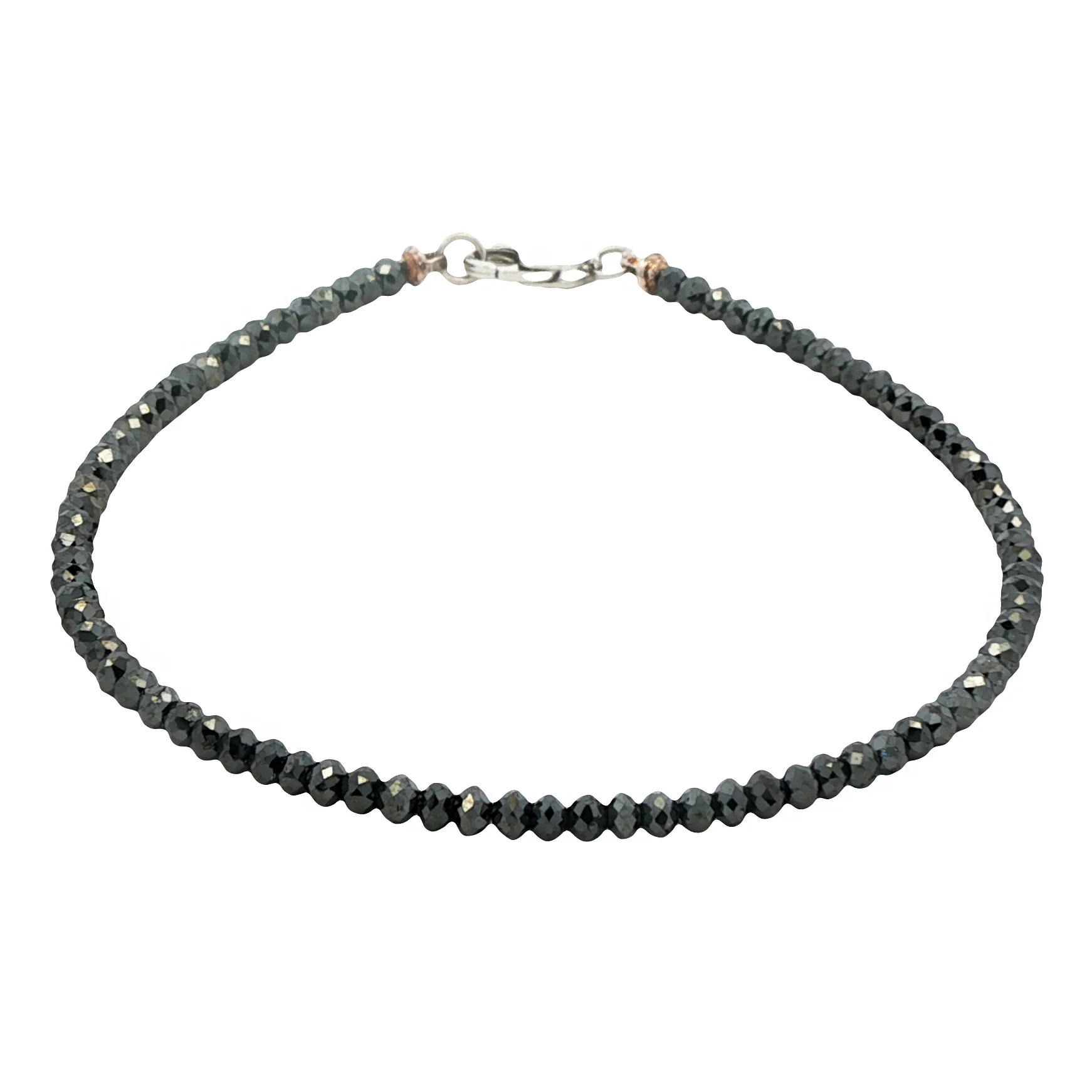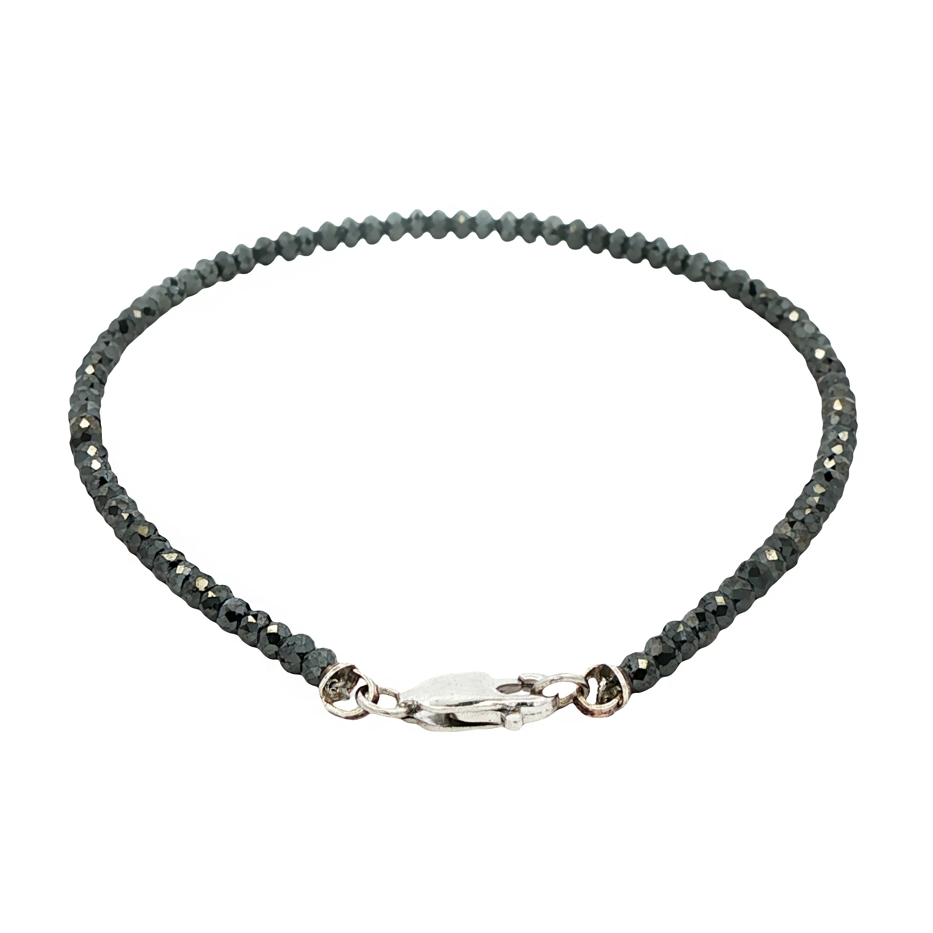 This 8″ black diamond beaded bracelet features 3mm stones for a clean look with a subtle dark shine. Its minimalist design wears well alone or stacked. A modern piece with a classic edge.