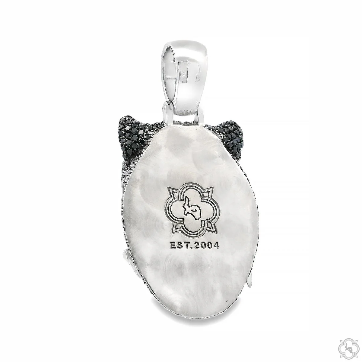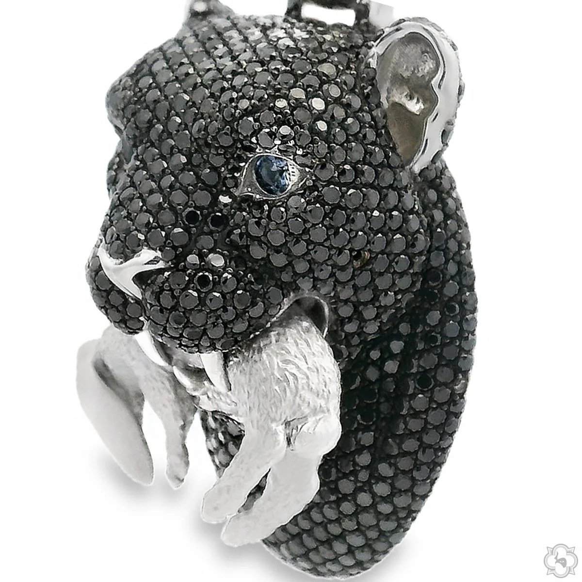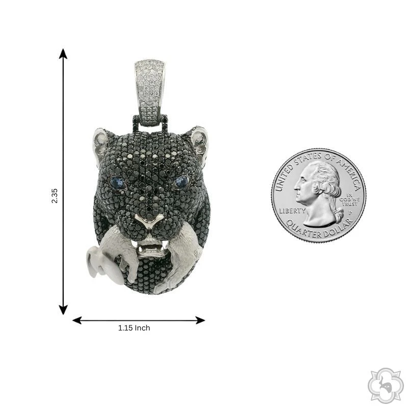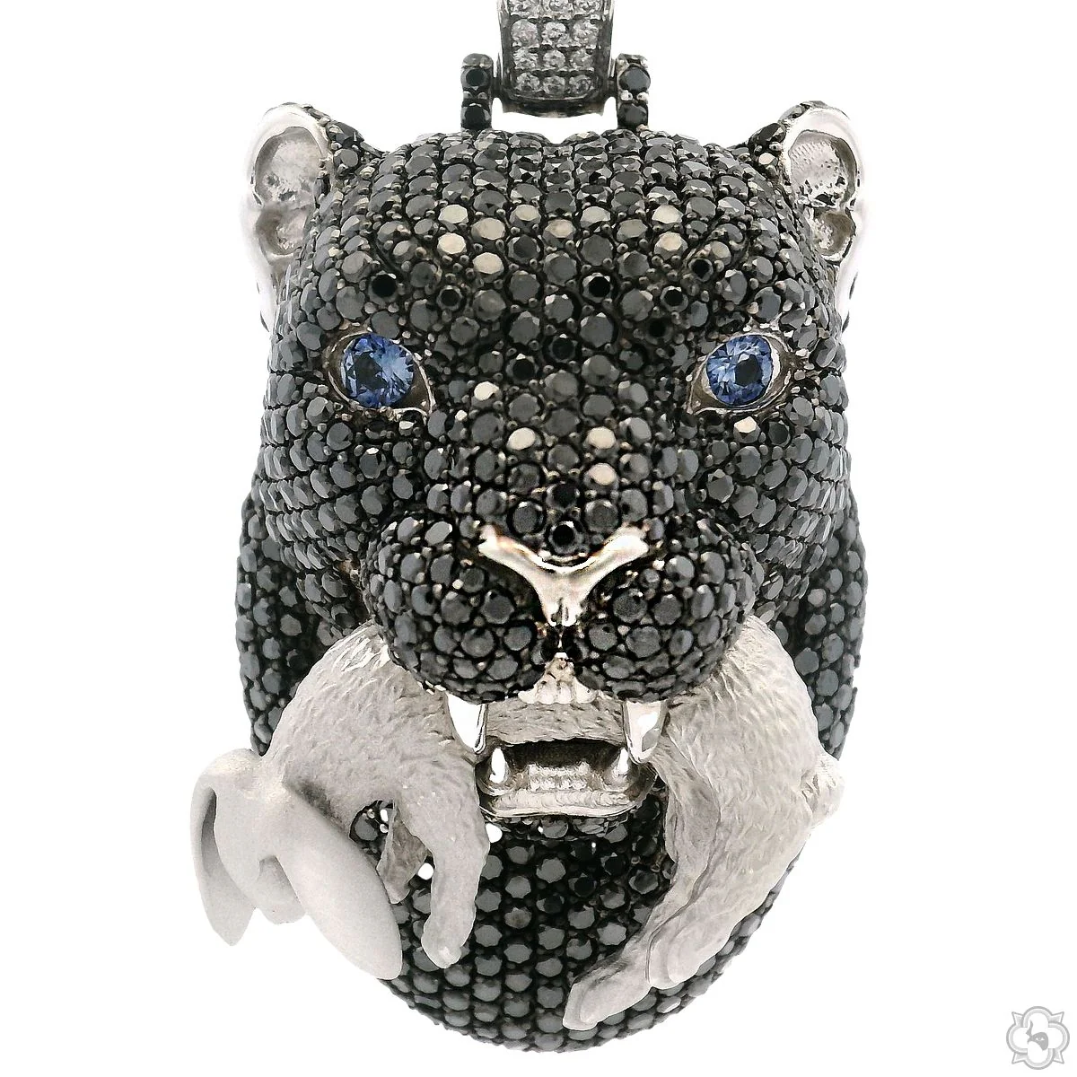 This fierce pendant features a panther design set with bold black diamonds and piercing blue eyes. Its detailed craftsmanship captures strength and elegance in one. A striking piece that makes a powerful statement.