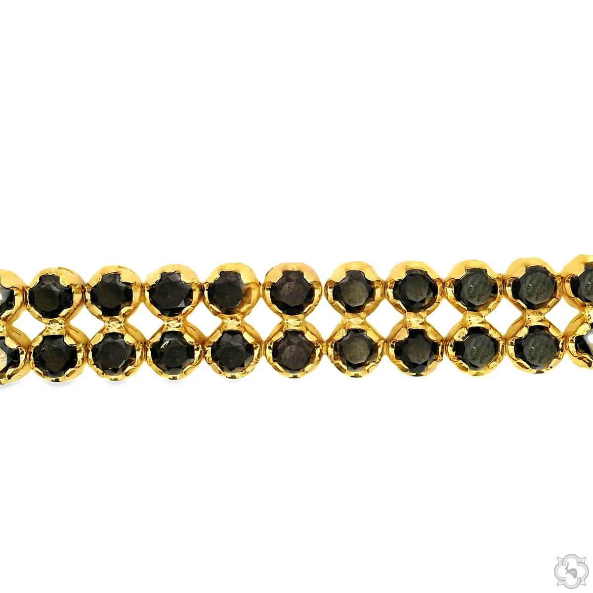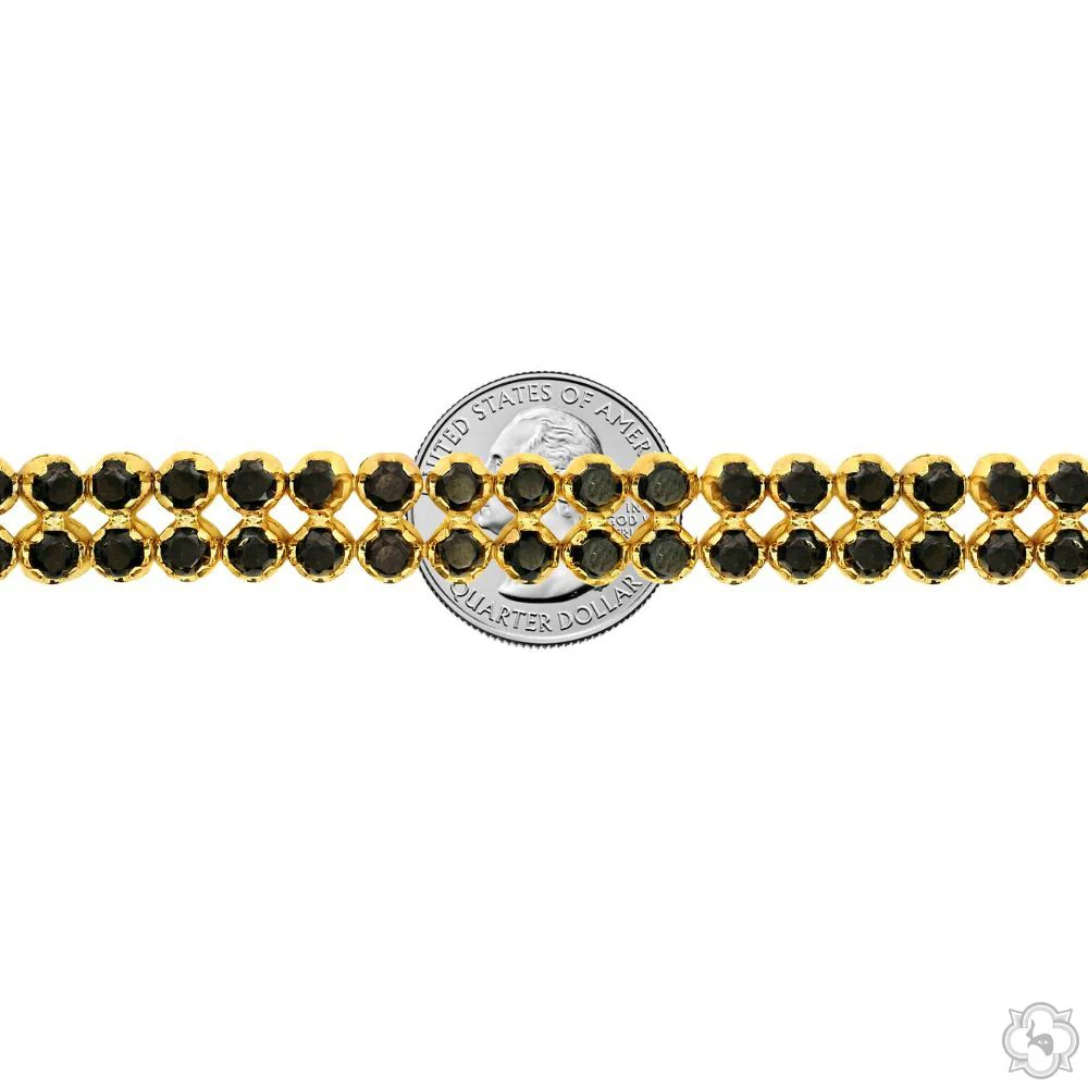 This bold bracelet features tow rows of striking black diamonds set in a seamless pattern for maximum impact. The dark brilliance contrasts beautifully with the polished metal, creating a refined and modern look. A statement piece that embodies confidence and luxury.