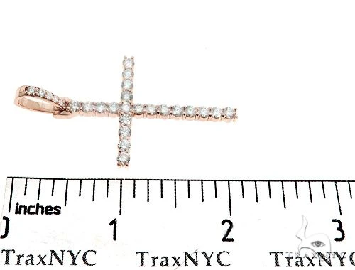 Custom 14K Rose Gold Prong Diamond Cross Pendant 65248
