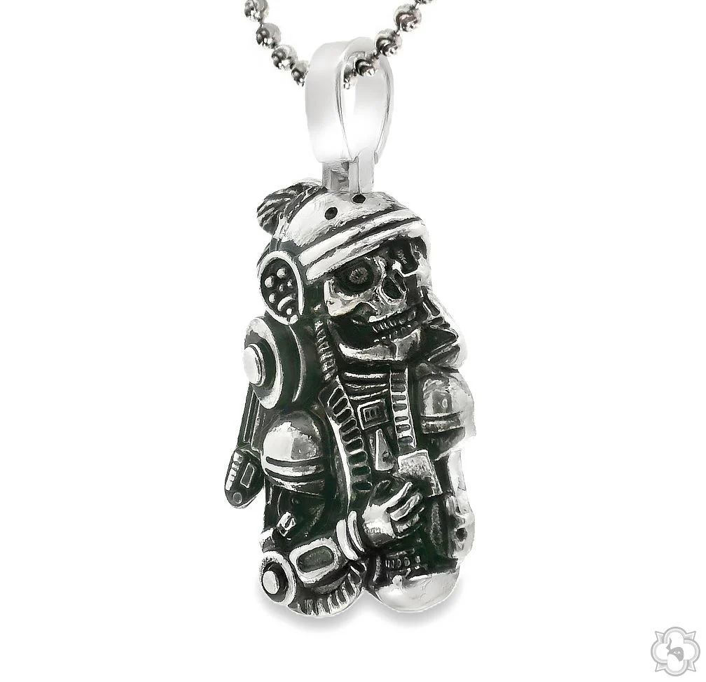 An electrifying fusion of past and future, the Cyber Legion Aztec Skull Pendant channels the fierce power of ancient warriors through a futuristic lens. Boldly detailed with mechanical armor and tribal intensity, this piece stands at the crossroads of myth and machine. Made for those who move through the world with fearless individuality and unshakable presence.