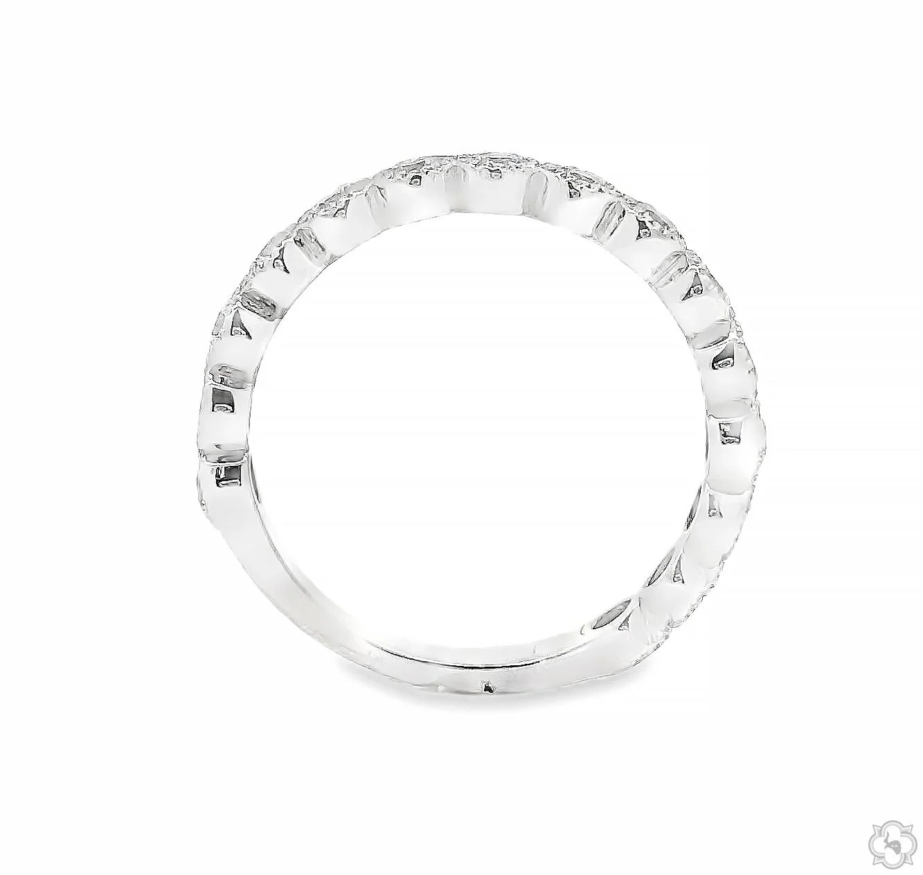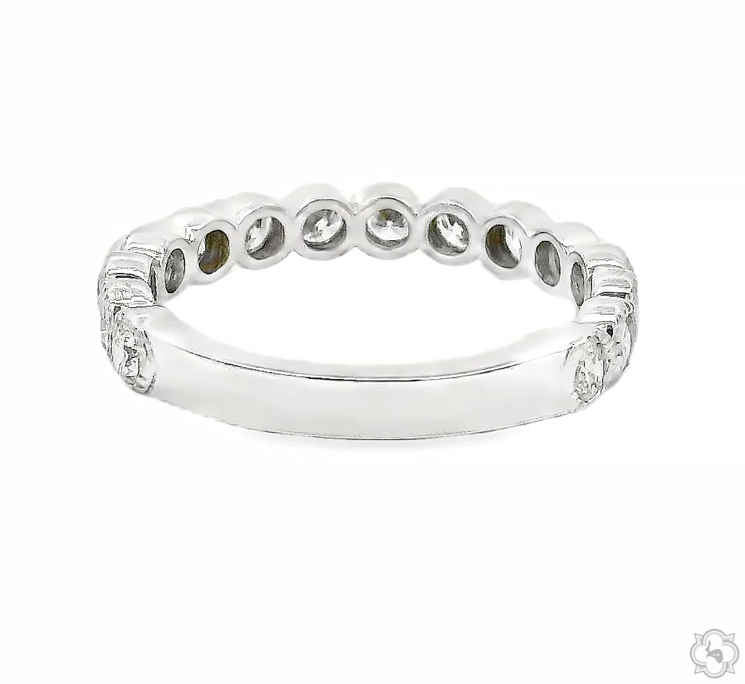 This band features round diamonds set in refined bezels for a modern and elegant style. The design highlights each stone with delicate detail and brilliance. A timeless ring that adds sophistication to any collection.