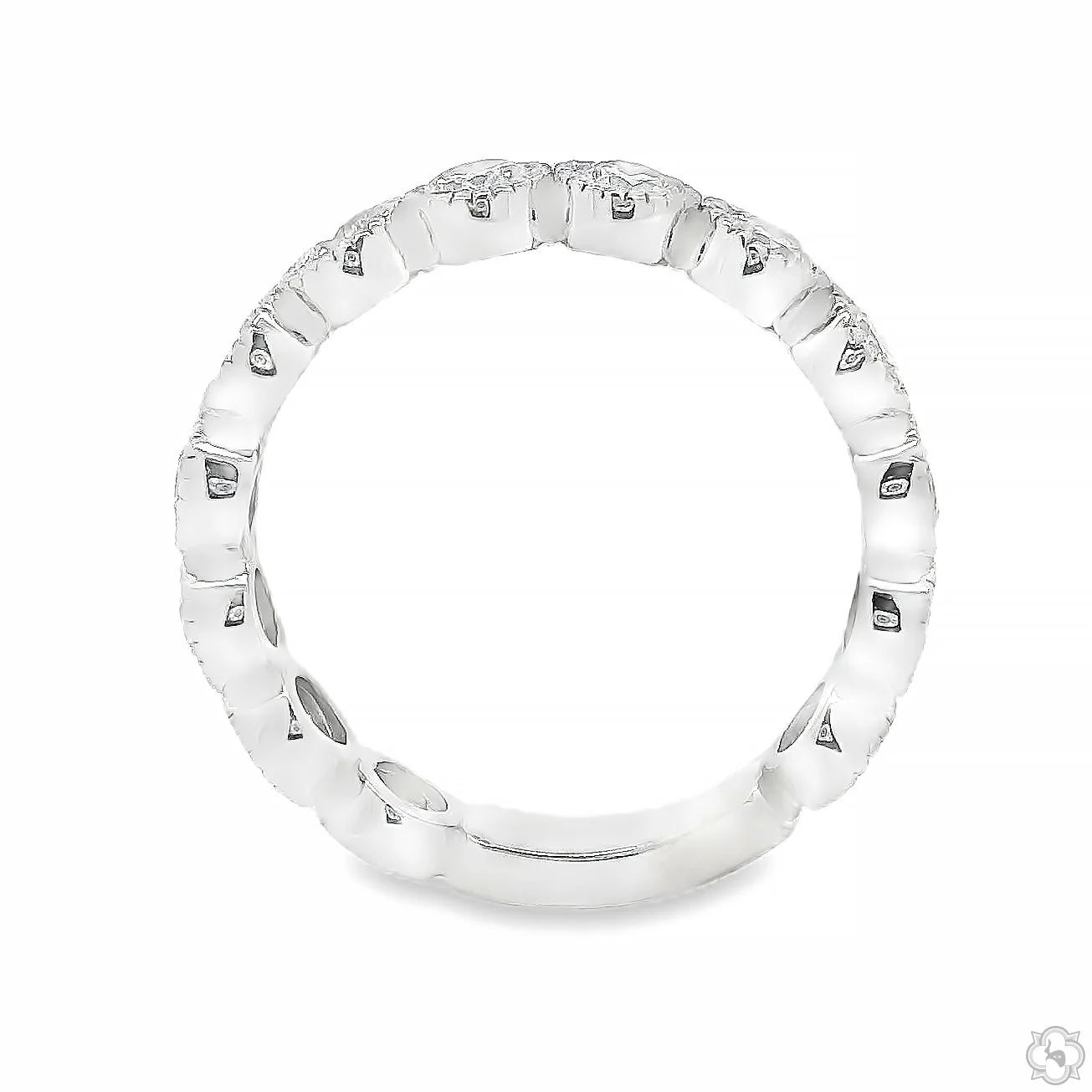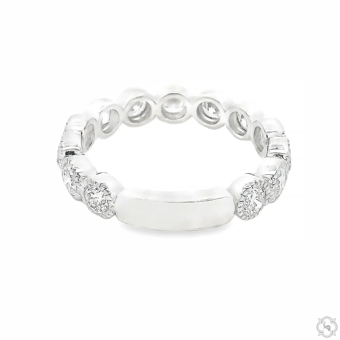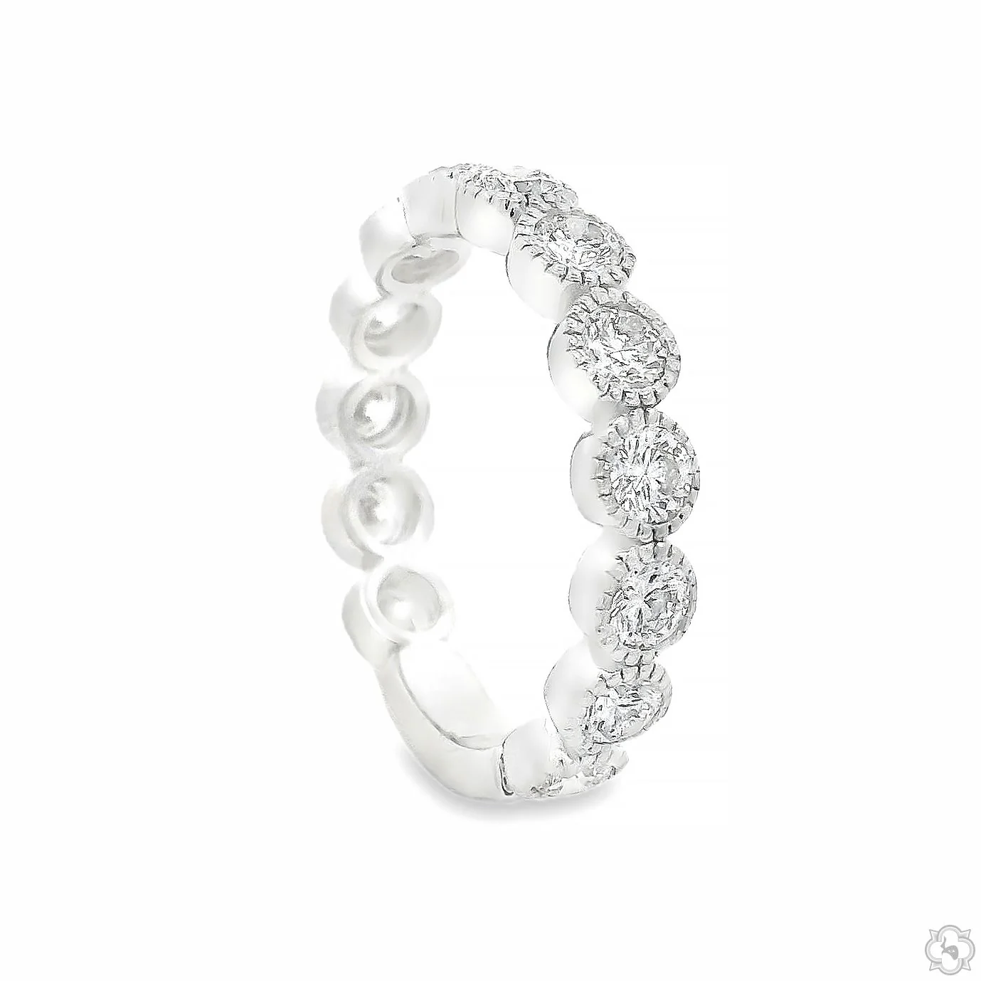 This band features round diamonds set in refined bezels for a modern and elegant style. The design highlights each stone with delicate detail and brilliance. A timeless ring that adds sophistication to any collection.