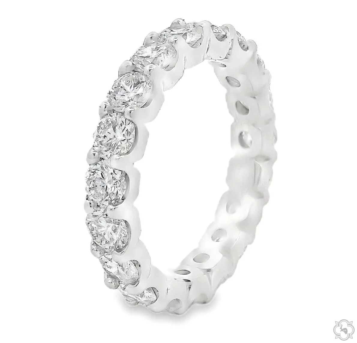 This timeless eternity band is set with diamonds that encircle the ring in endless brilliance. Its classic design symbolizes everlasting love and commitment. A perfect piece to wear alone or stacked with other rings for added sparkle.