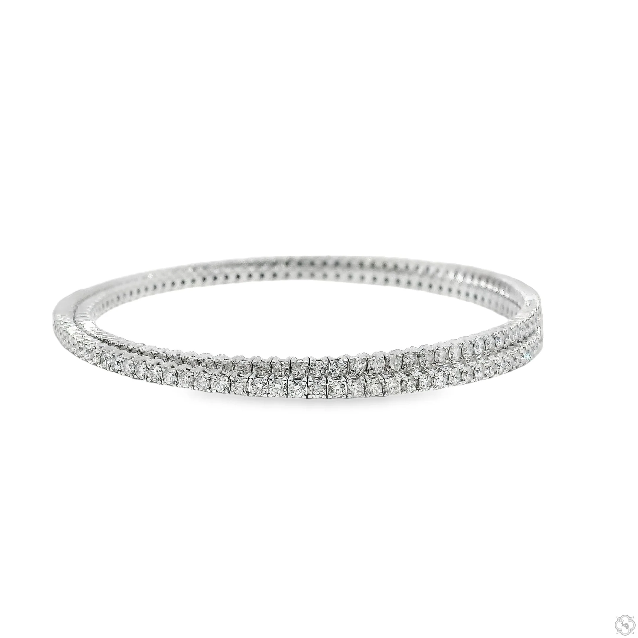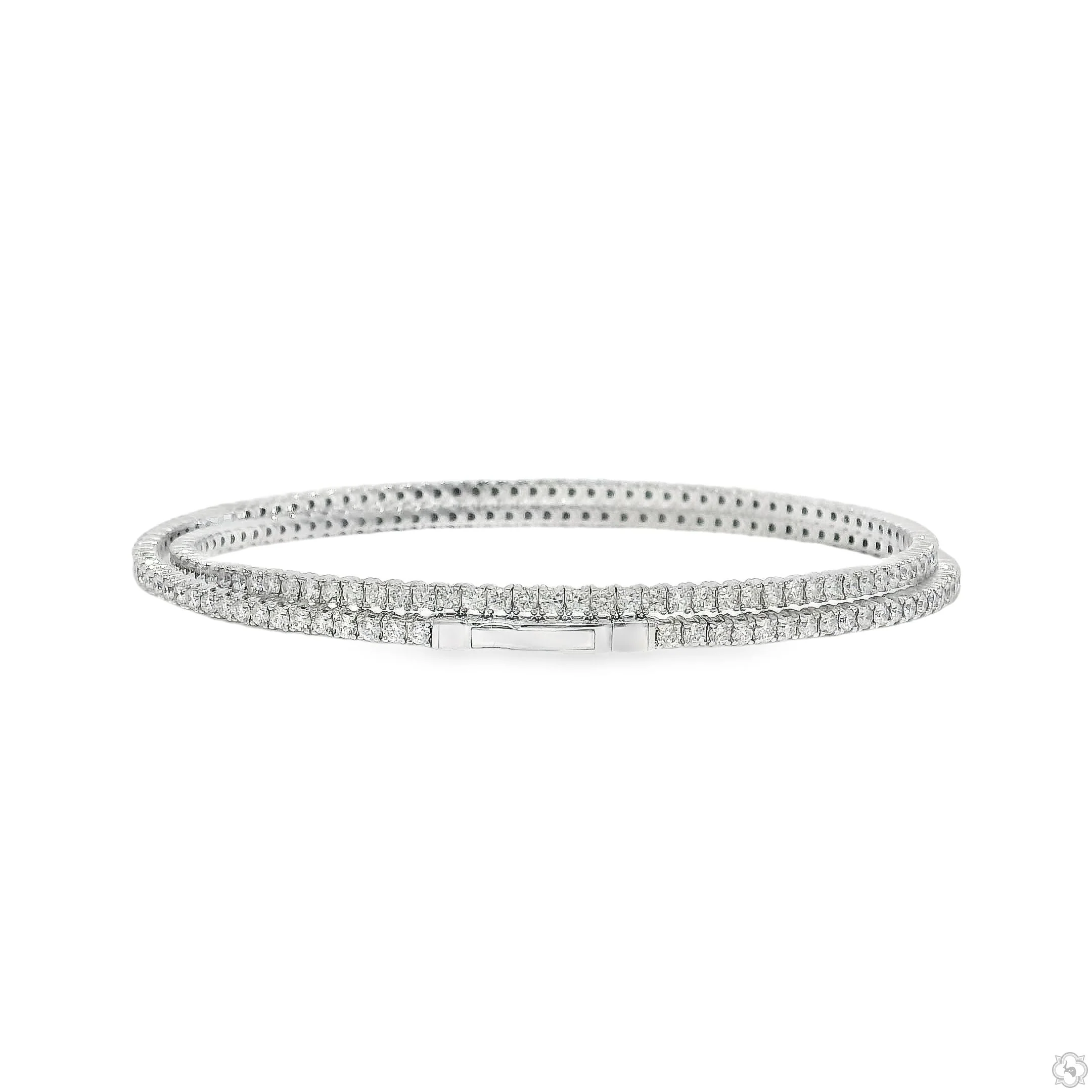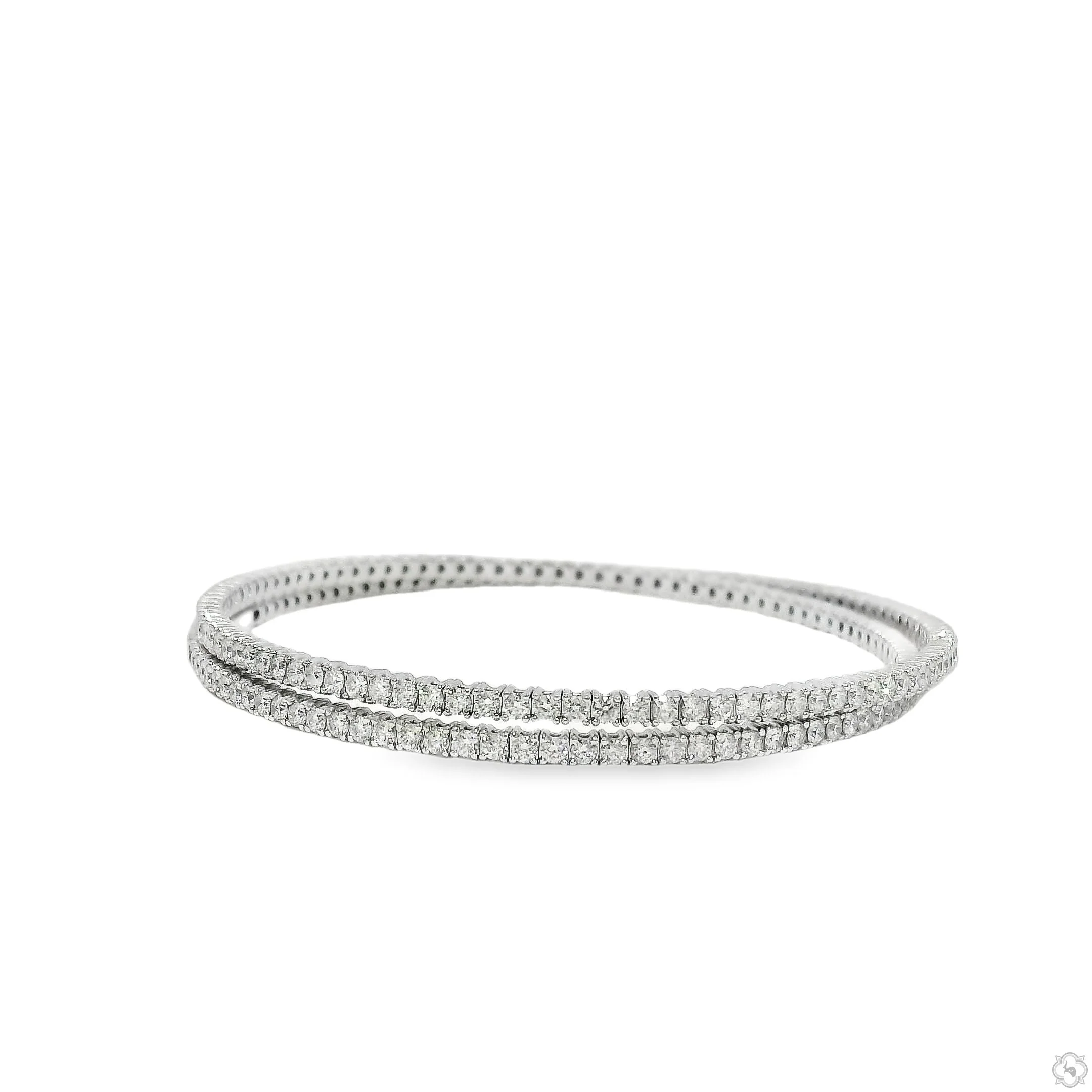 Sleek and radiant, the Double Row Diamond Bangle delivers twice the sparkle in a clean, elegant design. Perfect for stacking or wearing solo, this piece adds instant polish to any look. A refined essential for everyday shine and special moments alike.