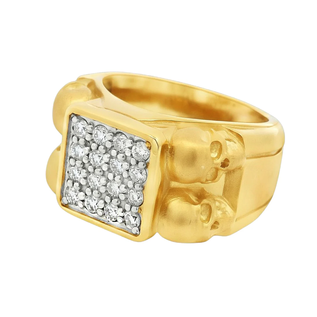 A fearless fusion of edge and luxury, the Double Skull Diamond Ring features twin skull motifs flanking a radiant diamond-paved centerpiece. Powerful in presence and rich in detail, it’s crafted for those who wear their individuality with confidence.