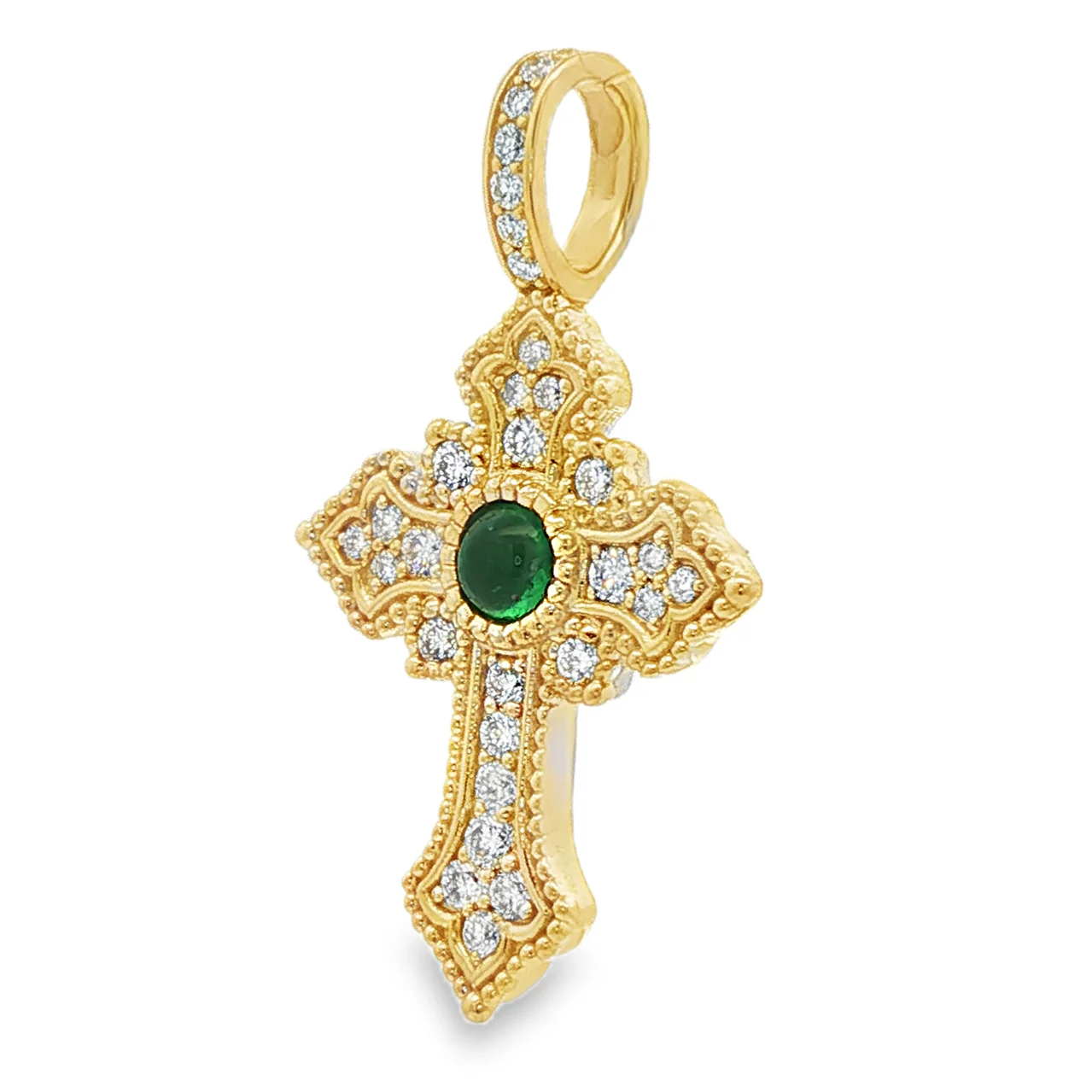 A symbol of faith and renewal, this pendant shines with radiant diamonds surrounding a vivid green gemstone at its heart. Its elegant design captures the essence of timeless beauty and enduring optimism, making it a meaningful piece for any collection.