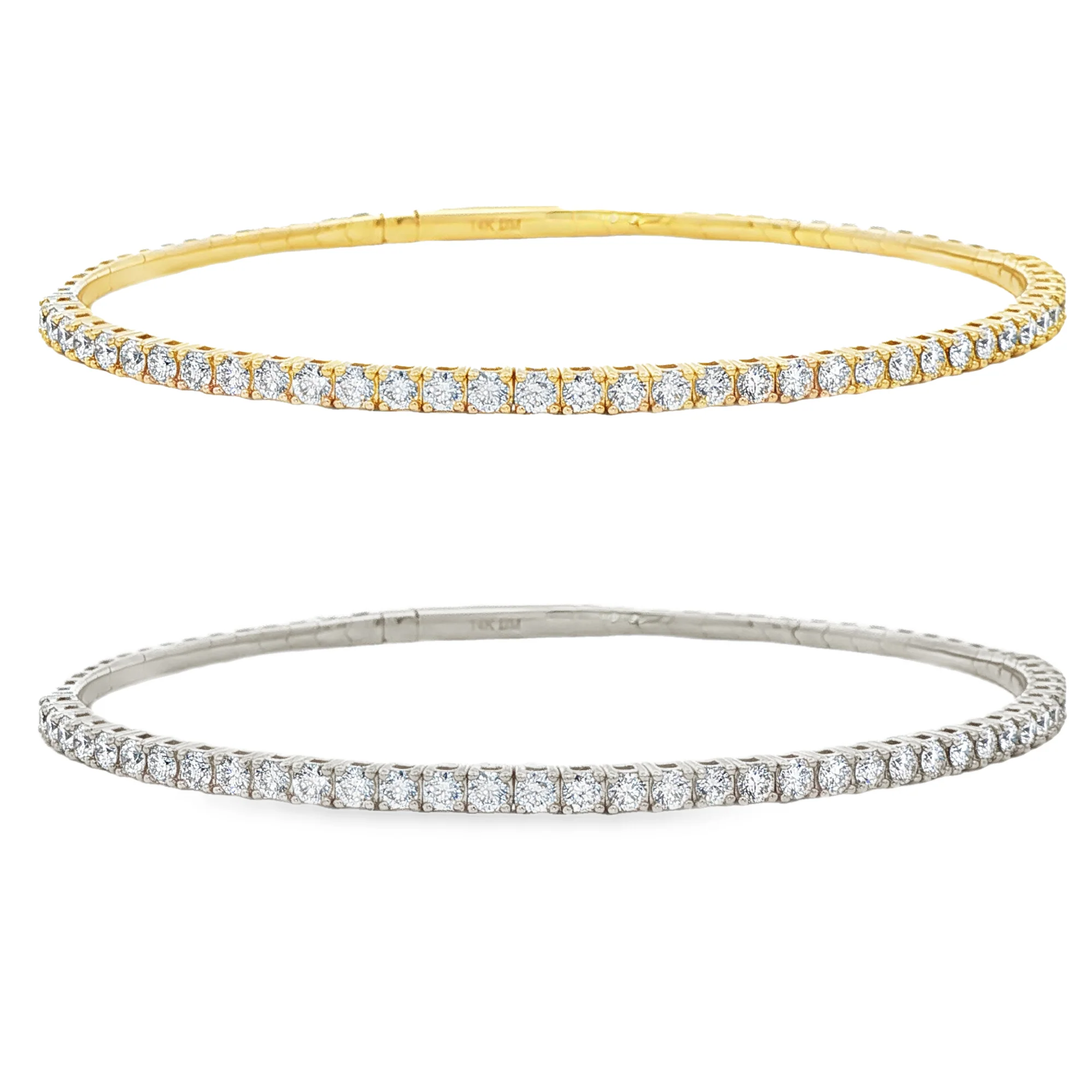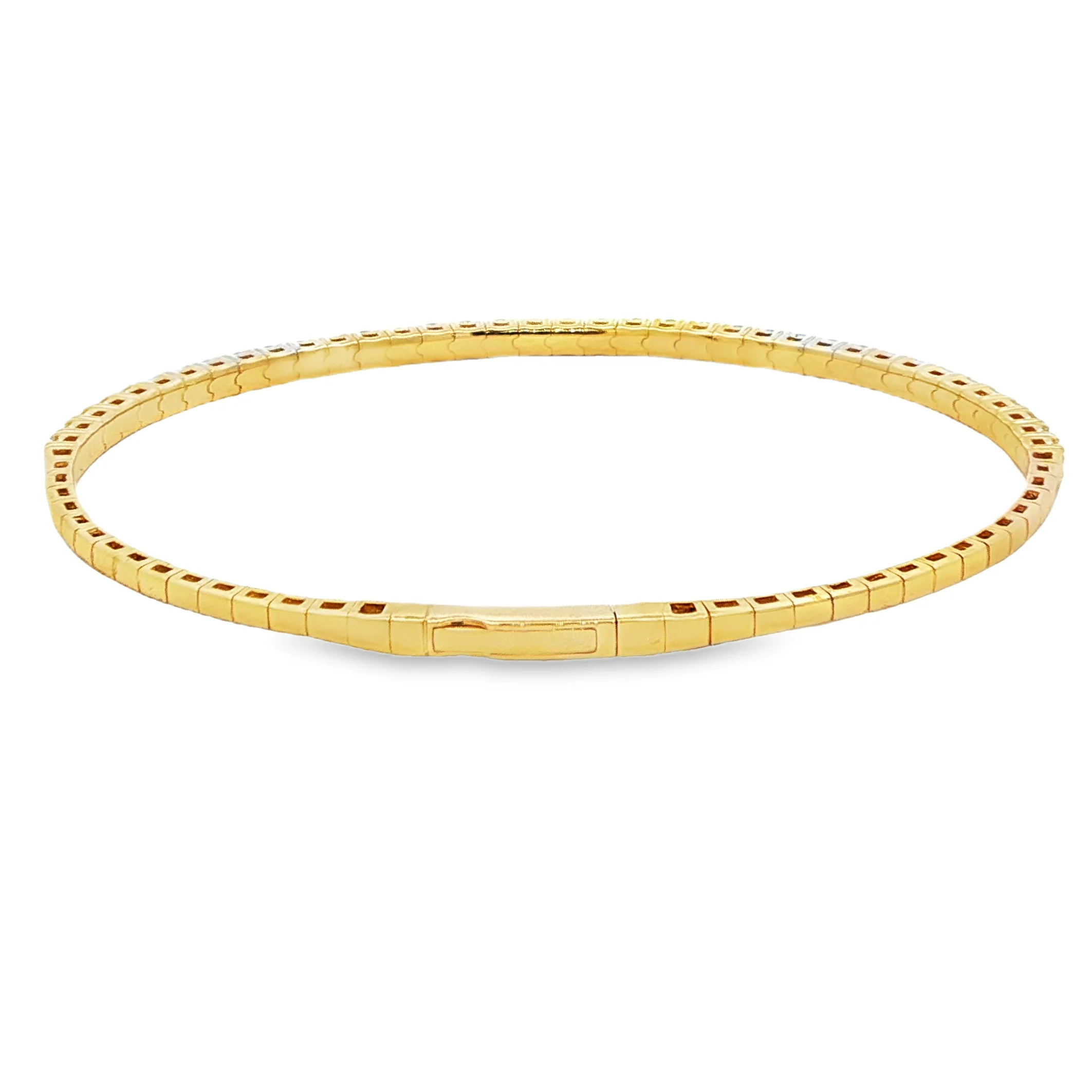 Elegant and versatile, this flexible diamond bangle bracelet moves with your wrist for all-day comfort. The sparkling diamond accents catch the light beautifully, making it perfect for both everyday wear and special occasions. Slip it on effortlessly and enjoy timeless sophistication that complements any style.