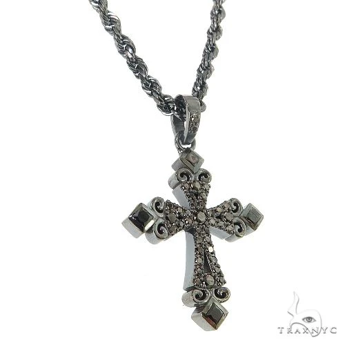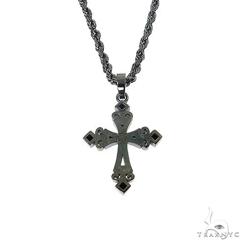 Gothic Style Black Diamond Cross Pendant Set 68713