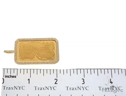 Embark on a captivating journey through time with our Greek Motif Dog Tag Pendant featuring the mesmerizing 1 Ounce PAMP Suisse Bar Lady Fortuna Pendant. This heavyweight masterpiece blends ancient allure and valuable pure gold, encased within a resplendent Greek Motif frame. With its potent symbolism and an impressive weight of 37.30 grams, this pendant not only captivates but also serves as a powerful hedge against inflation. Let its irresistible charm sweep you away and leave the world in awe of your unwavering pursuit of greatness.