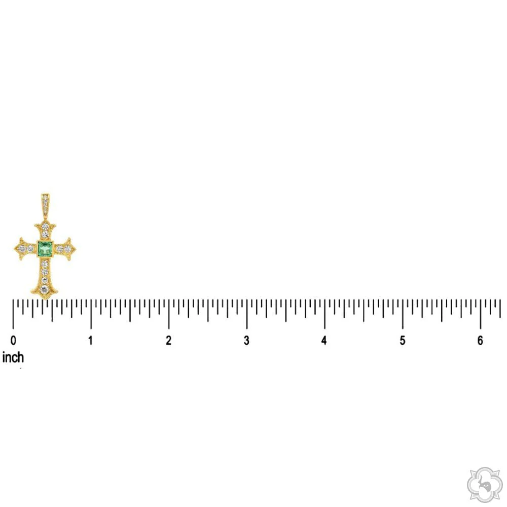 The Emerald Grace Cross Pendant is a striking blend of faith and elegance, crafted in rich yellow gold. A vivid cushion-cut emerald anchors the center, surrounded by brilliant round diamonds that highlight the cross’s ornate design. With milgrain details and a bold silhouette, this pendant radiates timeless sophistication—perfect for those who seek meaning and style in every detail.