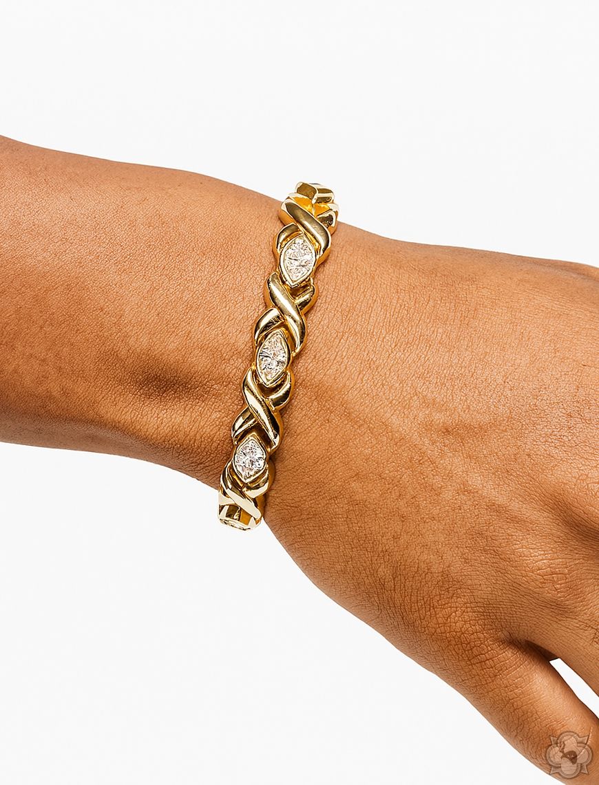 The Diamond Twist Link Bracelet blends bold links with smooth curves and bright diamonds. Each marquise-shaped stone is framed in a flowing X-style design for a look that stands out with elegance and strength. A statement piece that brings movement, luxury, and shine to every wrist.
