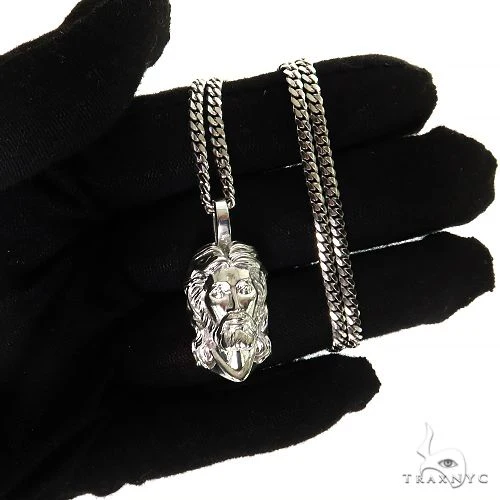 Sacred Visage Jesus Pendant Set .925 Silver 69619