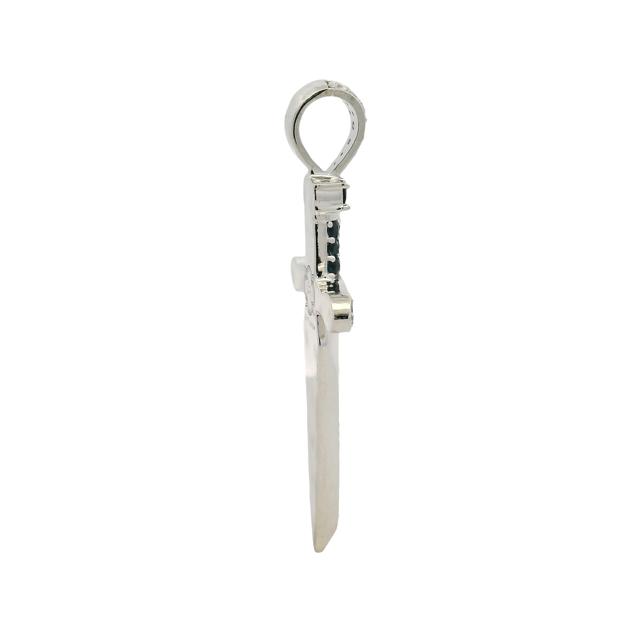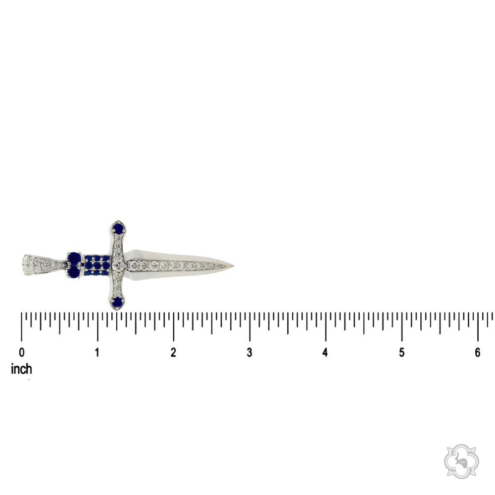 A striking blend of power and elegance, this sword pendant features deep blue sapphires paired with brilliant diamonds for a bold, noble finish. Designed with precise detailing from hilt to tip, it embodies strength, protection, and refined style in one standout piece.