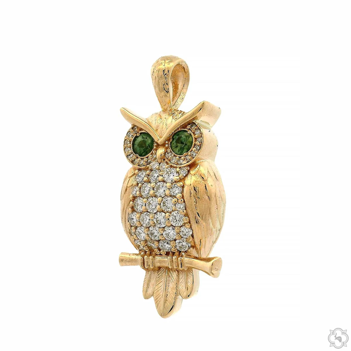 This captivating owl pendant features brilliant diamond detailing and vivid green sapphire eyes for a striking look. Crafted with fine attention to detail, it exudes charm and elegance. A unique piece that brings personality and sparkle to any style.