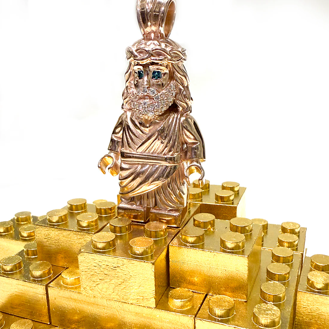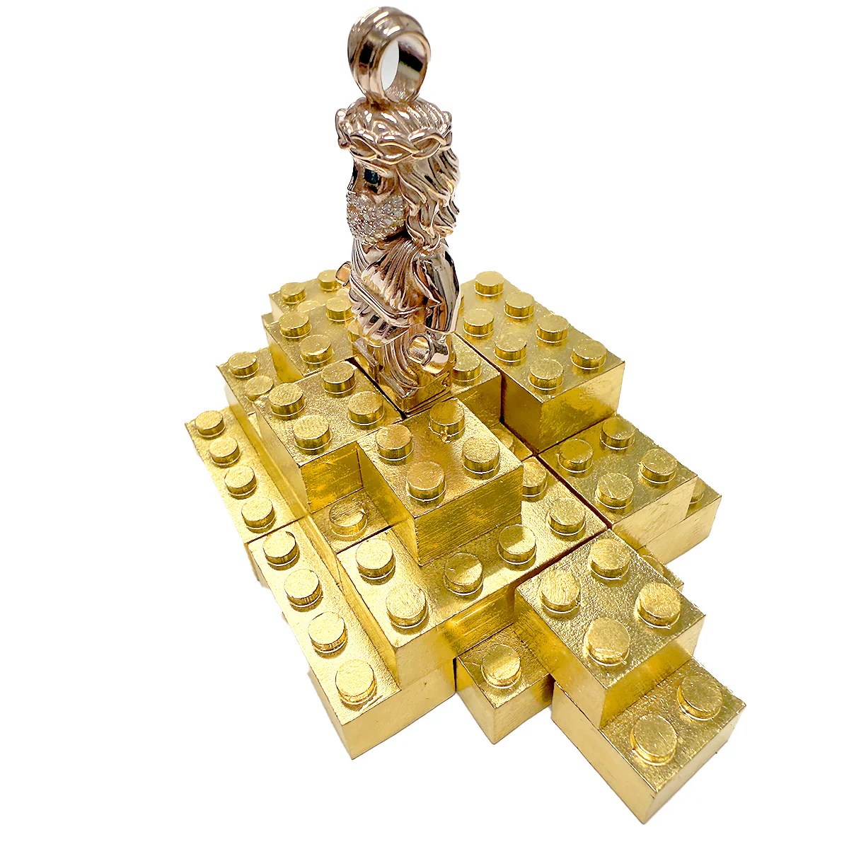 Featuring solid 24K gold Briks and a hand crafted 14K gold Jesus figure, this one of one creation embodies unmatched craftsmanship and divine exclusivity. Crafted in NYC, this 24K Gold Brik is a rare limited edition piece made with precision and artistry. Its value is close to the current gold price, making it both a collectible work of design and a smart investment in pure luxury.