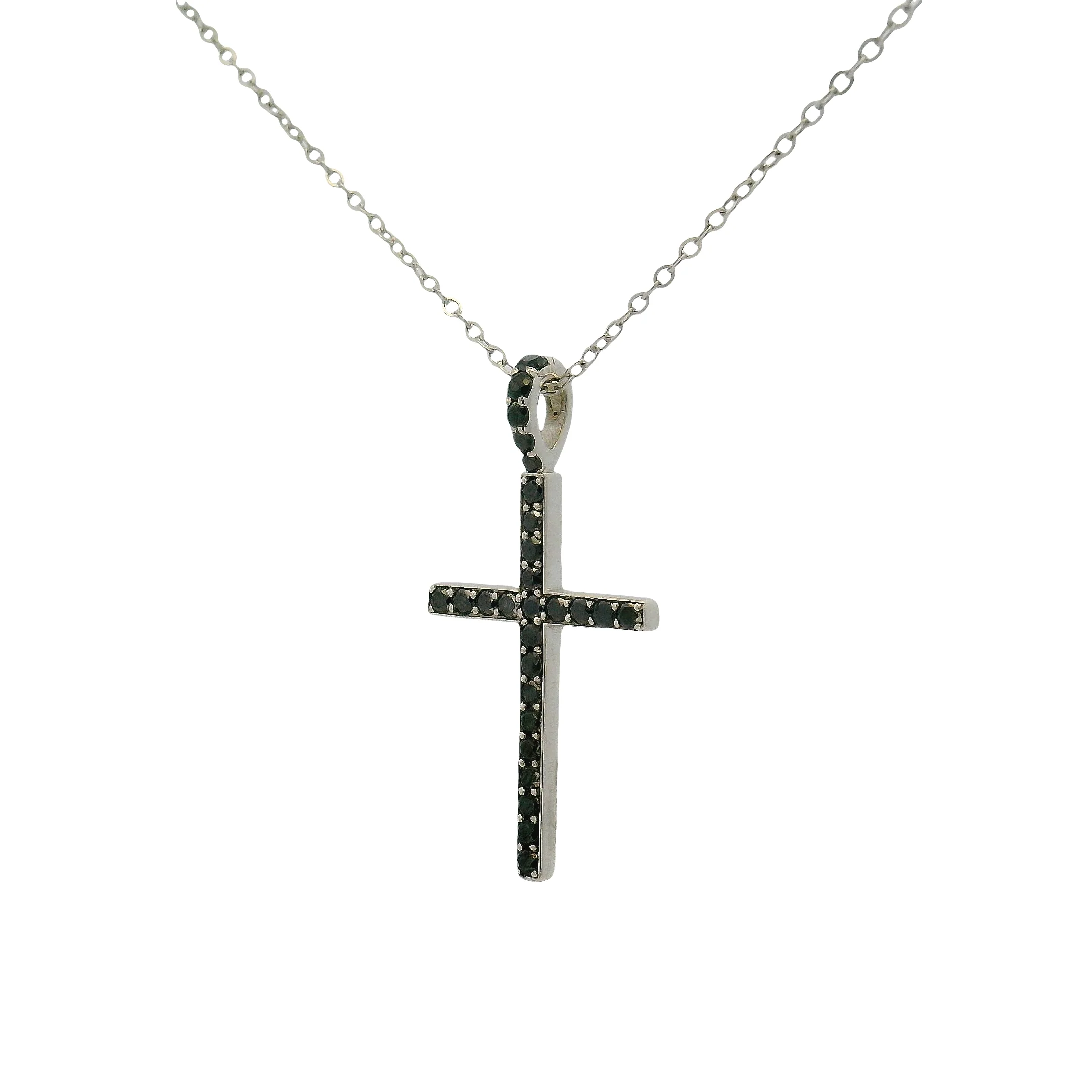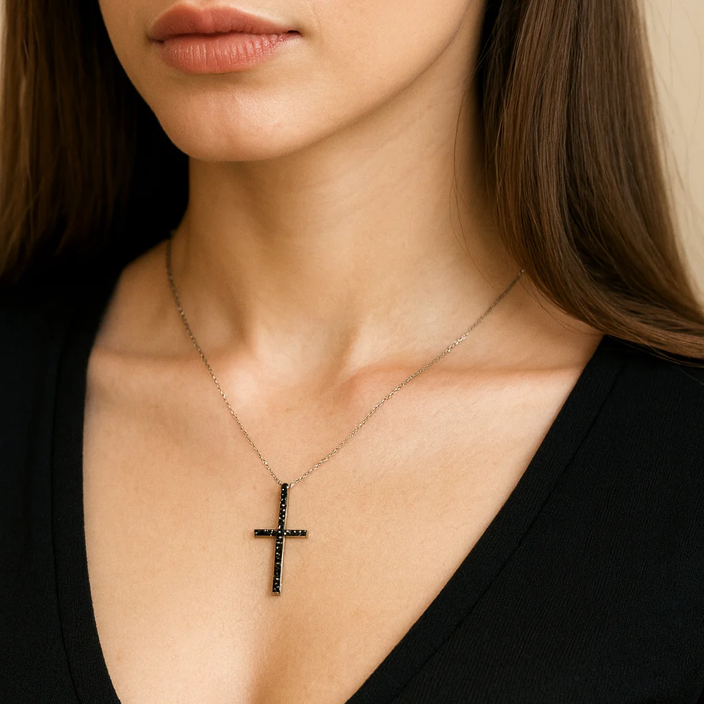 Strung on a sterling silver cable chain and set with black diamonds, this cross pendant is made for effortless, everyday wear. The adjustable 18–20″ chain lets you find the fit that works best for you. Wear it alone or layer it with other pieces, our Silver Black Diamond Cross Set is simple, modern, and made to last.