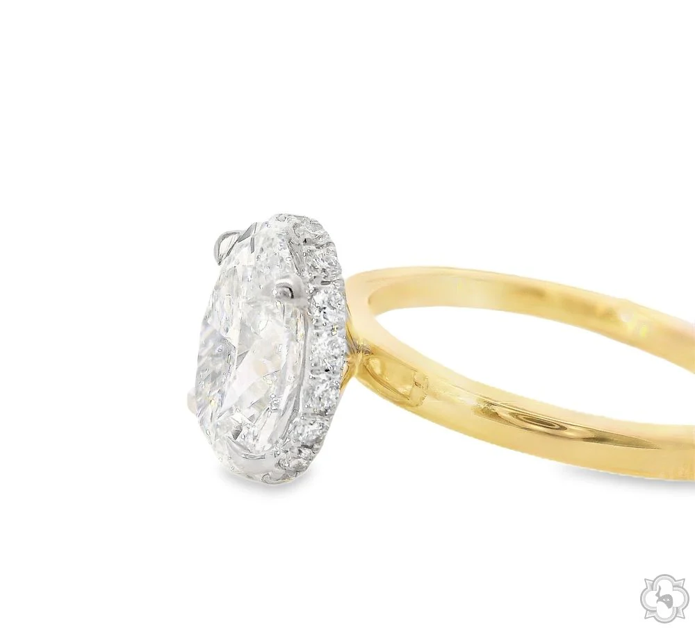 Solis radiates with celestial energy, centered around a luminous 2 carat oval diamond that captures and reflects light like the rising sun. Set in a sleek, minimalist band, the elongated stone shines with brilliance and intention bold, yet effortlessly refined. The name Solis, Latin for “sun,” speaks to the ring’s warmth, clarity, and the quiet power of its design made for the wearer who glows without trying.