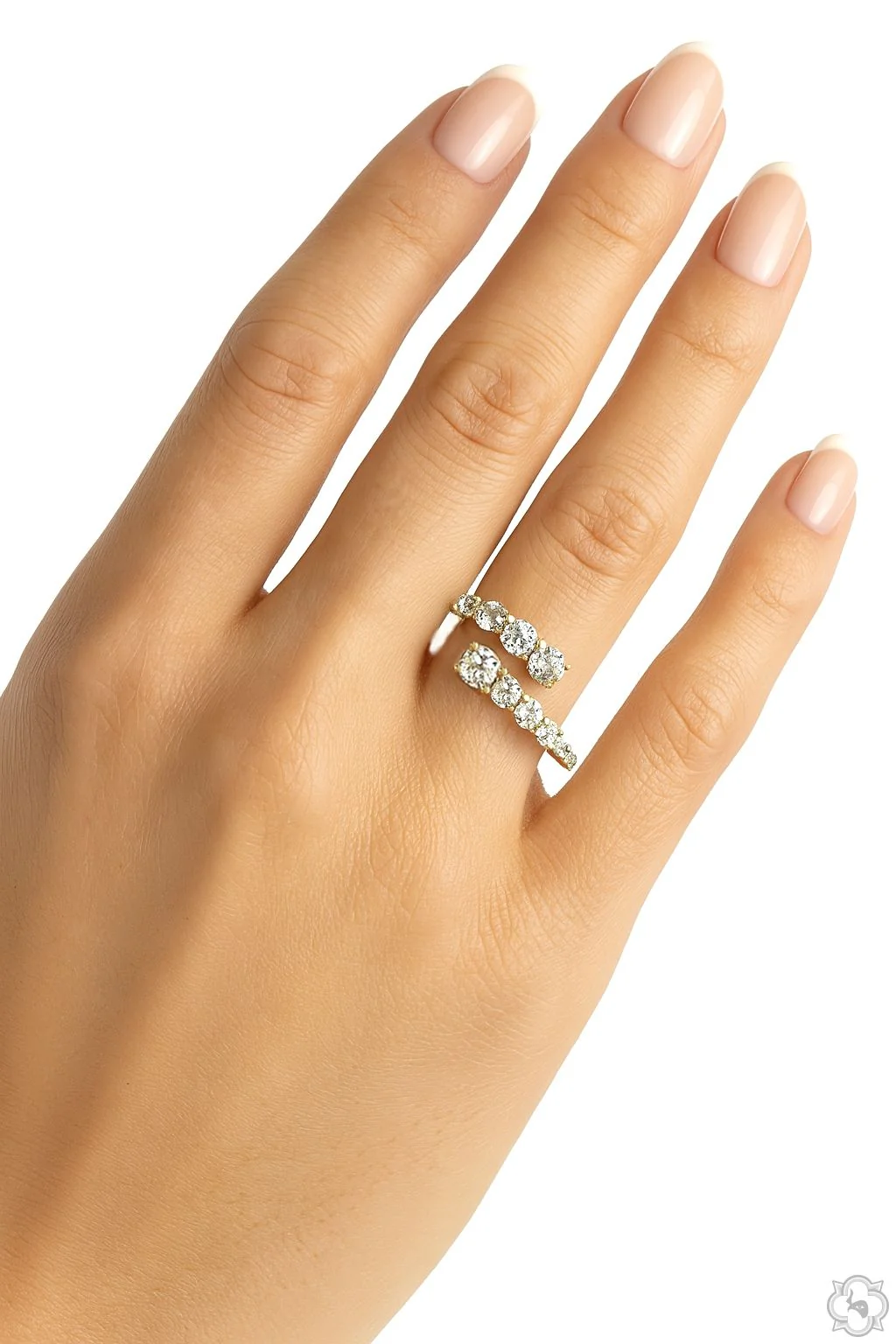 This elegant spiral design wraps the finger in brilliance. Each stone is set to catch the light from every angle. A standout piece perfect for everyday shine or special occasions.