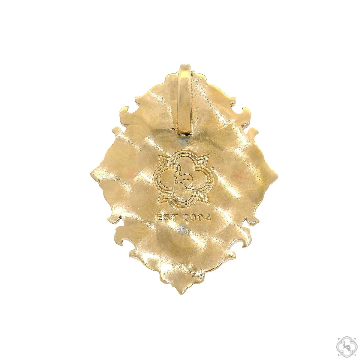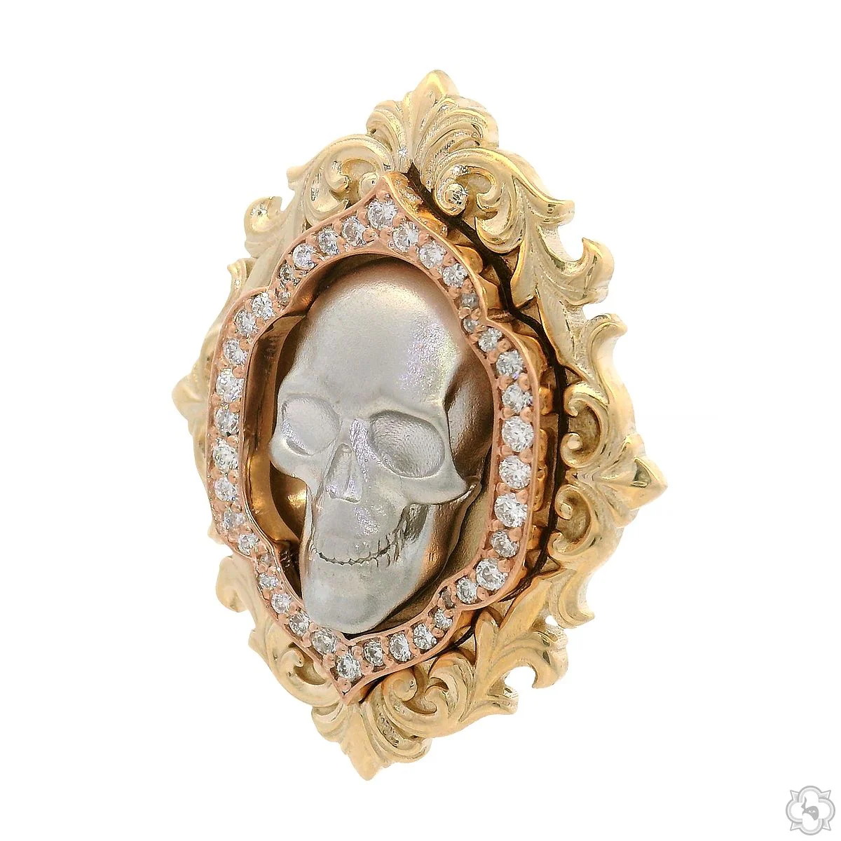 An intricate fusion of classic artistry and bold symbolism, this pendant combines ornate baroque detailing with a sculpted skull centerpiece. Framed by shimmering stones, it embodies fearless individuality and timeless expression with a touch of gothic elegance.