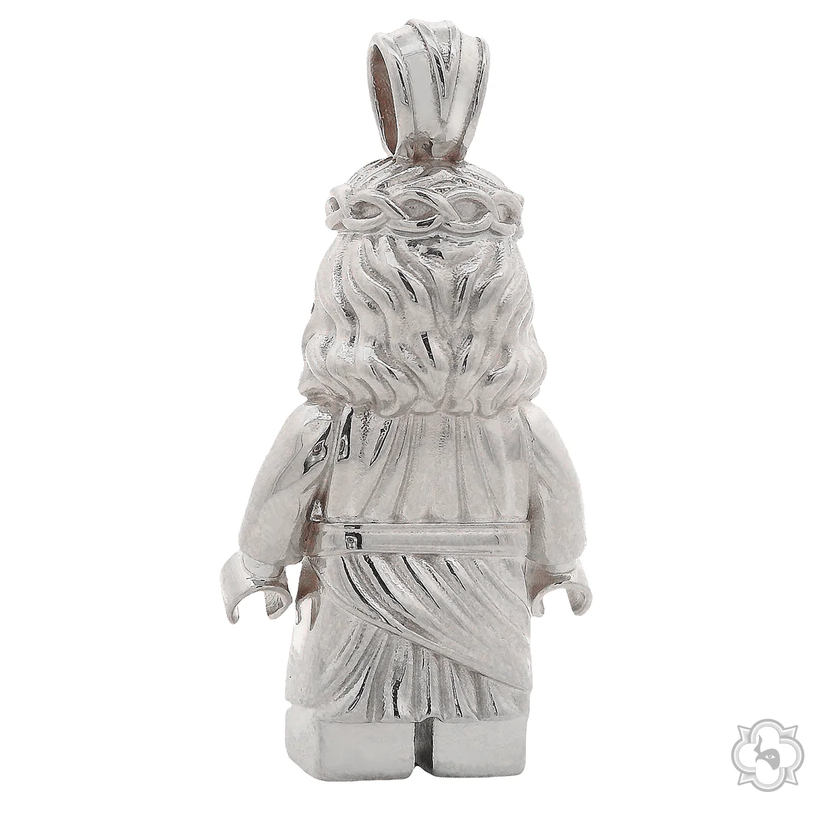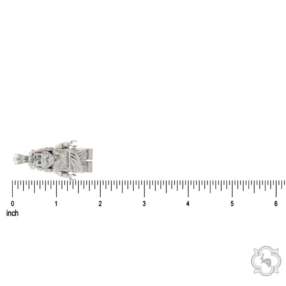 This creative silver pendant reimagines a sacred figure with a modern artistic twist. Detailed craftsmanship and diamond accents bring depth and character to its design, blending spirituality with playful luxury. A bold statement piece that embodies faith, art, and individuality in perfect harmony.