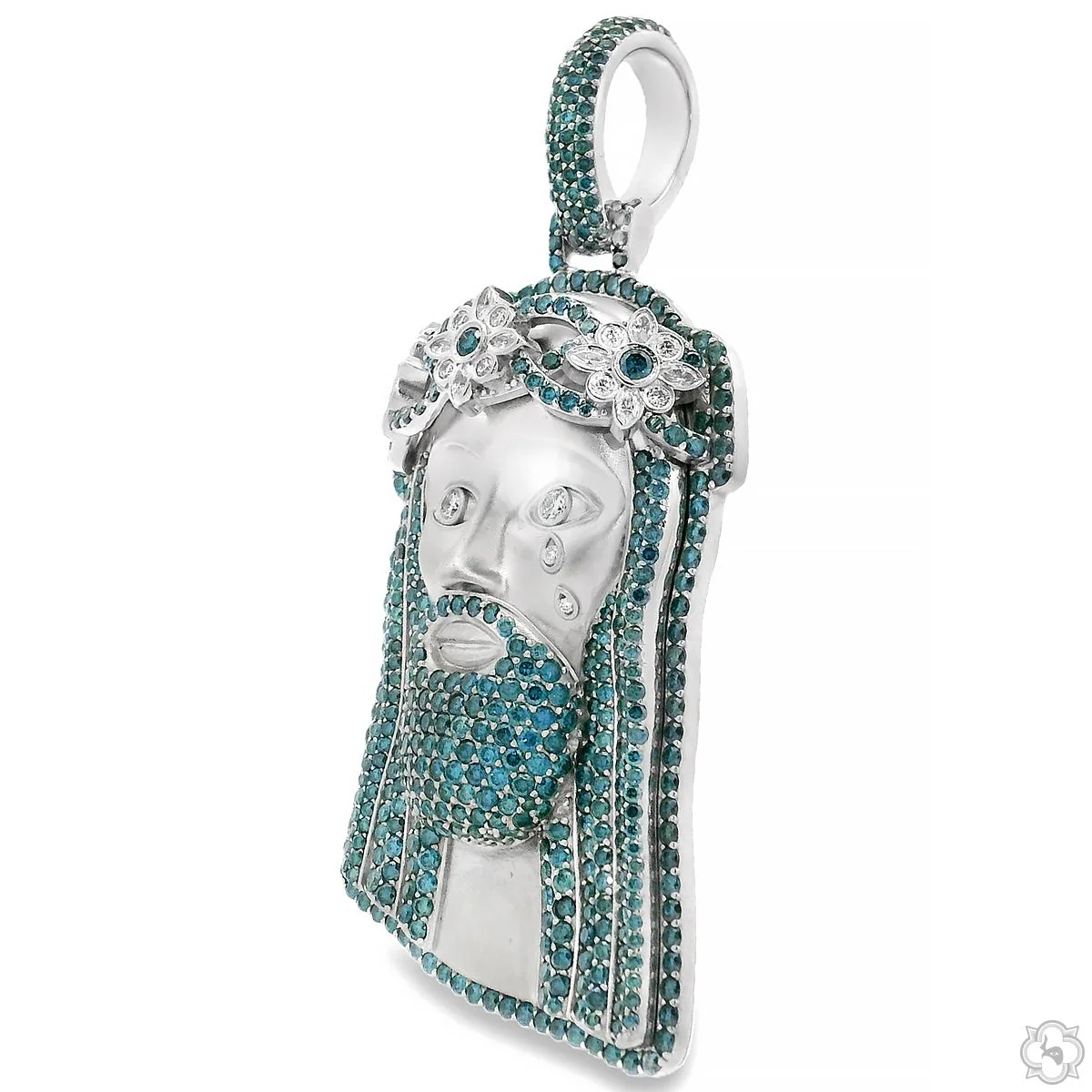 Radiant in white gold and adorned with vivid blue stones, the Celestial Mercy Jesus Pendant captures the serenity and strength of divine compassion. The intricate crown, sparkling eyes, and teardrop accent highlight the emotional depth and spiritual symbolism of this design. A unique piece that merges modern elegance with timeless devotion.