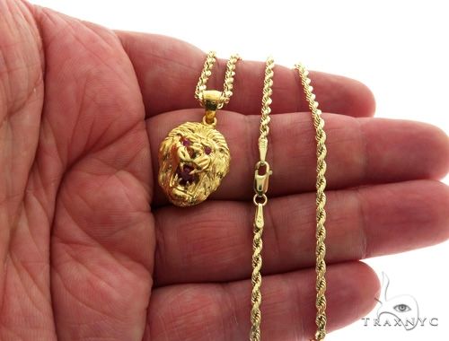 TraxNYC Ruby Lion Pendant and Rope Chain Set 61556