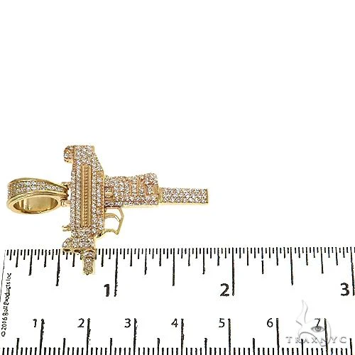 Make a powerful statement with this eye-catching Uzi submachine gun pendant, featuring intricate details and luxurious diamond accents. The combination of bold design and sparkling elements makes it a unique addition to any jewelry collection. Perfect for showcasing your individuality, this pendant is sure to turn heads.