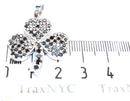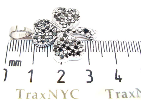 White Gold Round Cut Prong Black Diamond Clover Pendant 24855